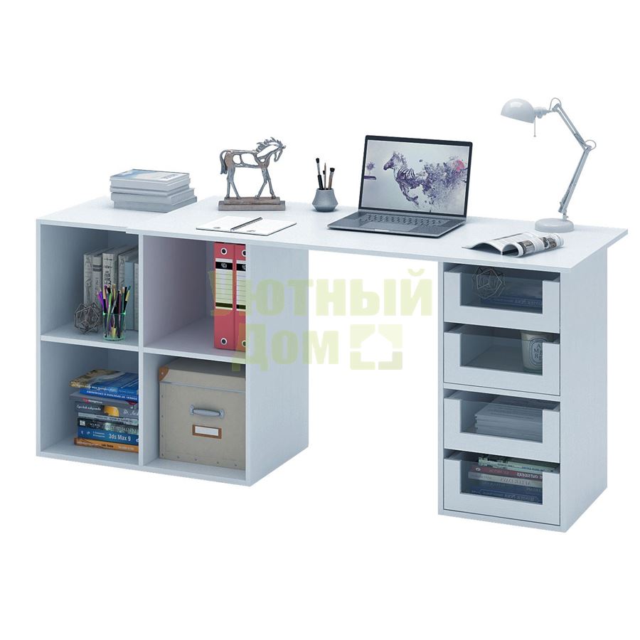 Стол является комплектом модульной системы Прайм. Вы можете собрать индивидуальный комплект из столешниц разных размеров, тумб разных форм и их наполнений (дверок, блока ящиков, ящиков со стеклом или больших ящиков).