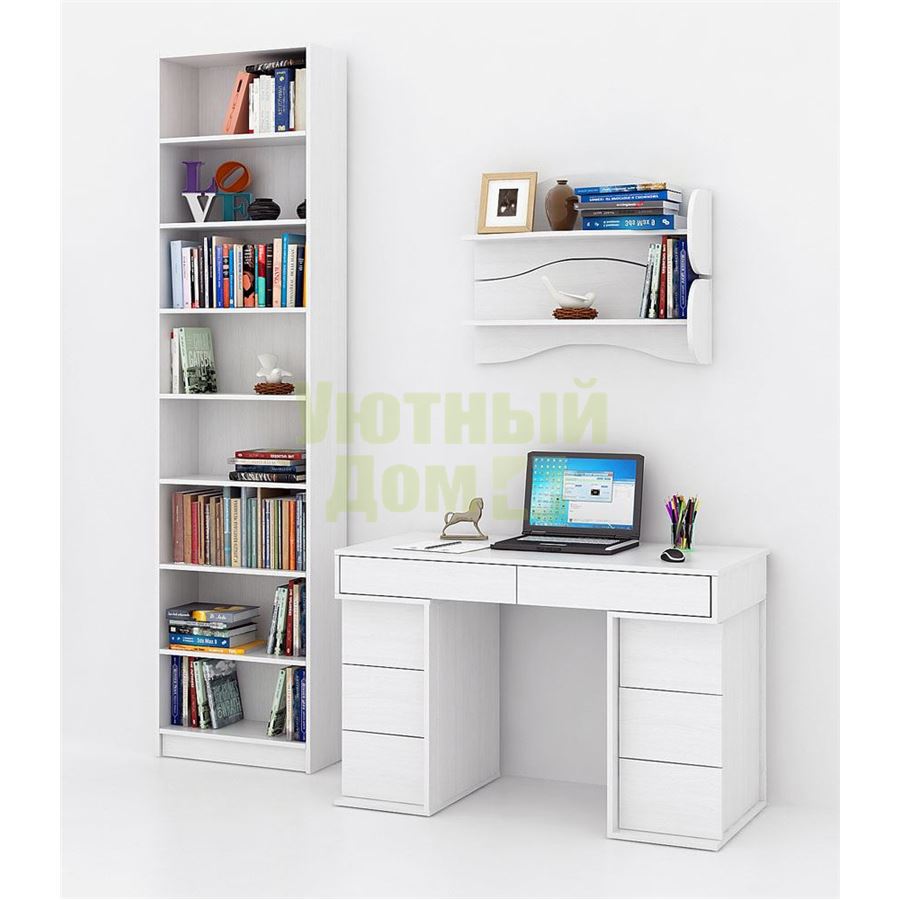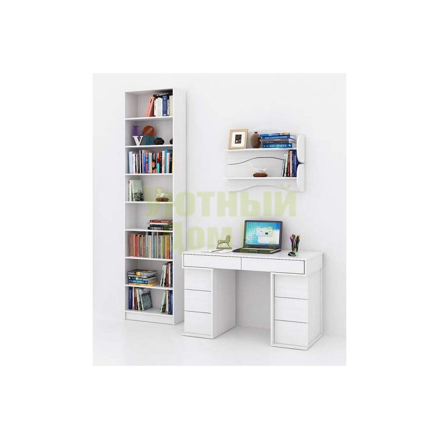 Каждый элемент возможно приобрести по отдельности. Состав комплекта: стол Антер-4 (1 шт.), стеллаж Милан-33 (1 шт.), полка Тэя-1 (2 шт.).