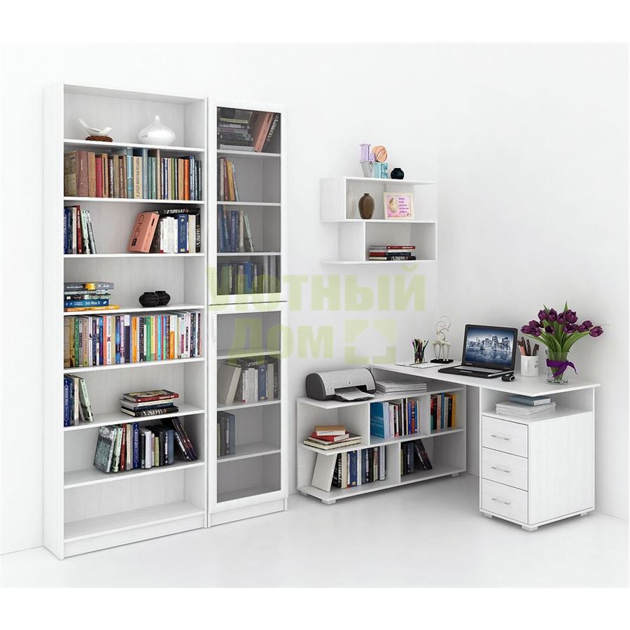 Каждый элемент возможно приобрести по отдельности. Состав комплекта: стол угловой Барди-1 (1 шт.), стеллажи Милан-35 (1 шт.), Милан-37 (1 шт.), полка Файн-13 (1 шт.).