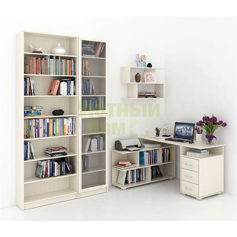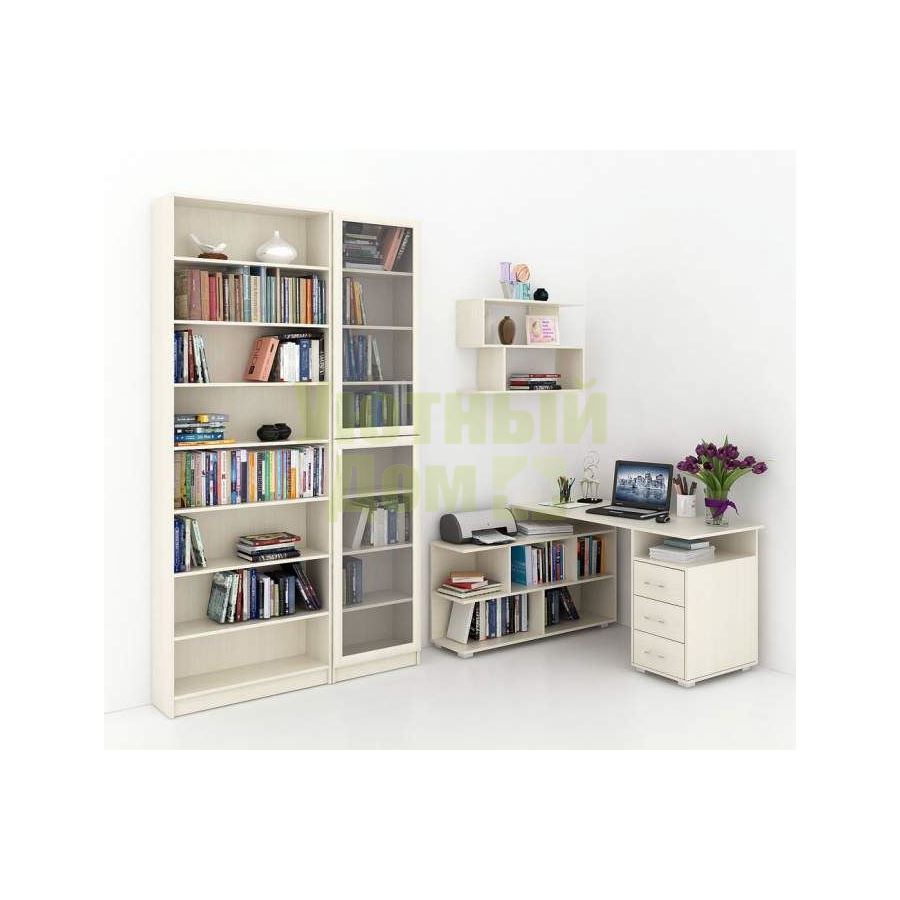 Каждый элемент возможно приобрести по отдельности. Состав комплекта: стол угловой Барди-1 (1 шт.), стеллажи Милан-35 (1 шт.), Милан-37 (1 шт.), полка Файн-13 (1 шт.).