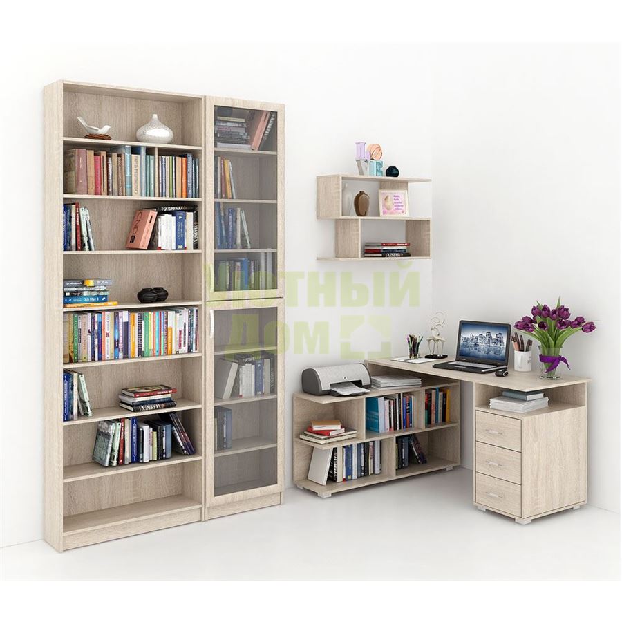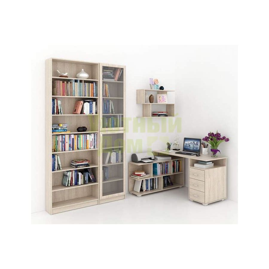 Каждый элемент возможно приобрести по отдельности. Состав комплекта: стол угловой Барди-1 (1 шт.), стеллажи Милан-35 (1 шт.), Милан-37 (1 шт.), полка Файн-13 (1 шт.).
