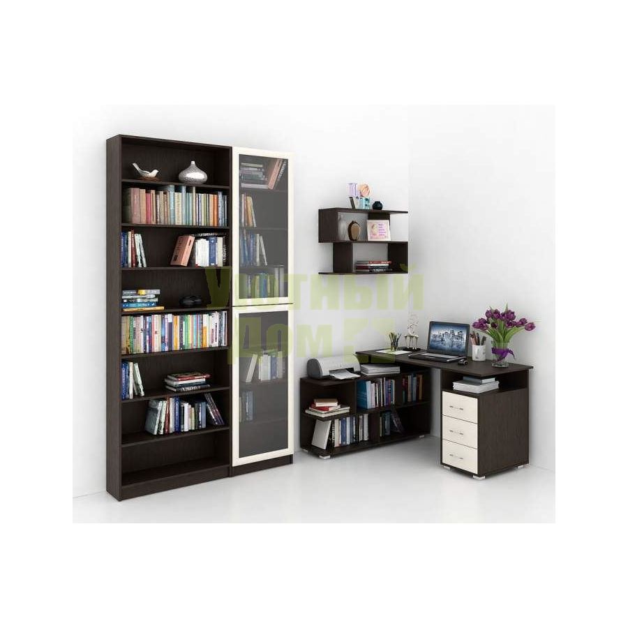 Каждый элемент возможно приобрести по отдельности. Состав комплекта: стол угловой Барди-1 (1 шт.), стеллажи Милан-35 (1 шт.), Милан-37 (1 шт.), полка Файн-13 (1 шт.).