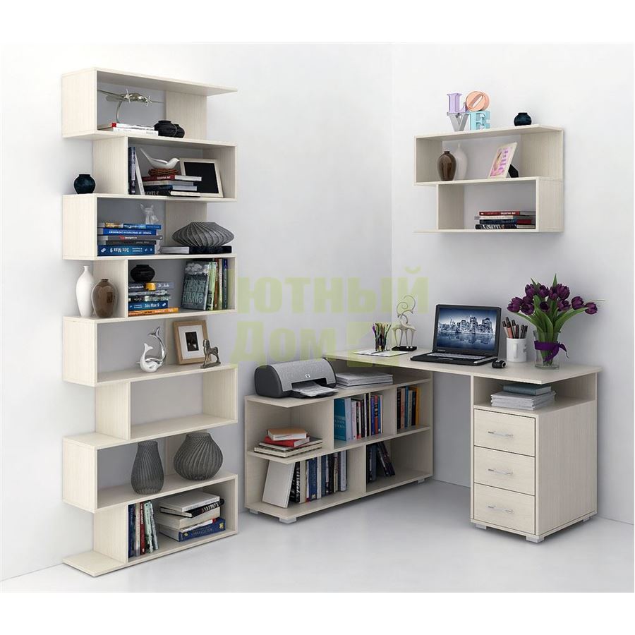 Каждый элемент возможно приобрести по отдельности. Состав комплекта: стол угловой Барди-1 (1 шт.), стеллаж Файн-4 (1 шт.), полка Файн-13 (1 шт.).