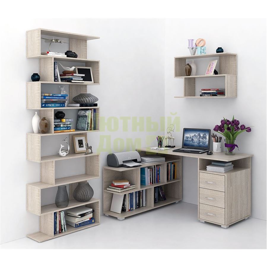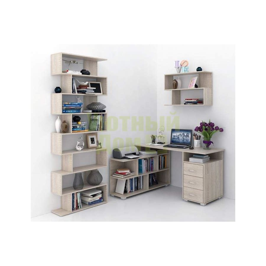 Каждый элемент возможно приобрести по отдельности. Состав комплекта: стол угловой Барди-1 (1 шт.), стеллаж Файн-4 (1 шт.), полка Файн-13 (1 шт.).