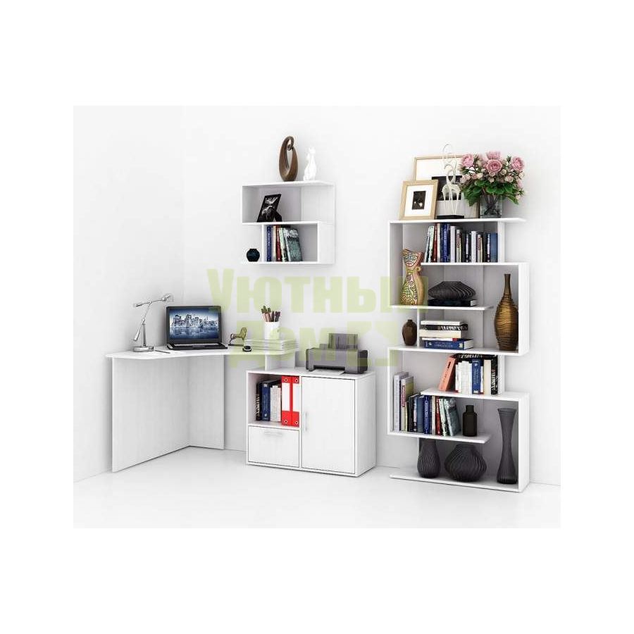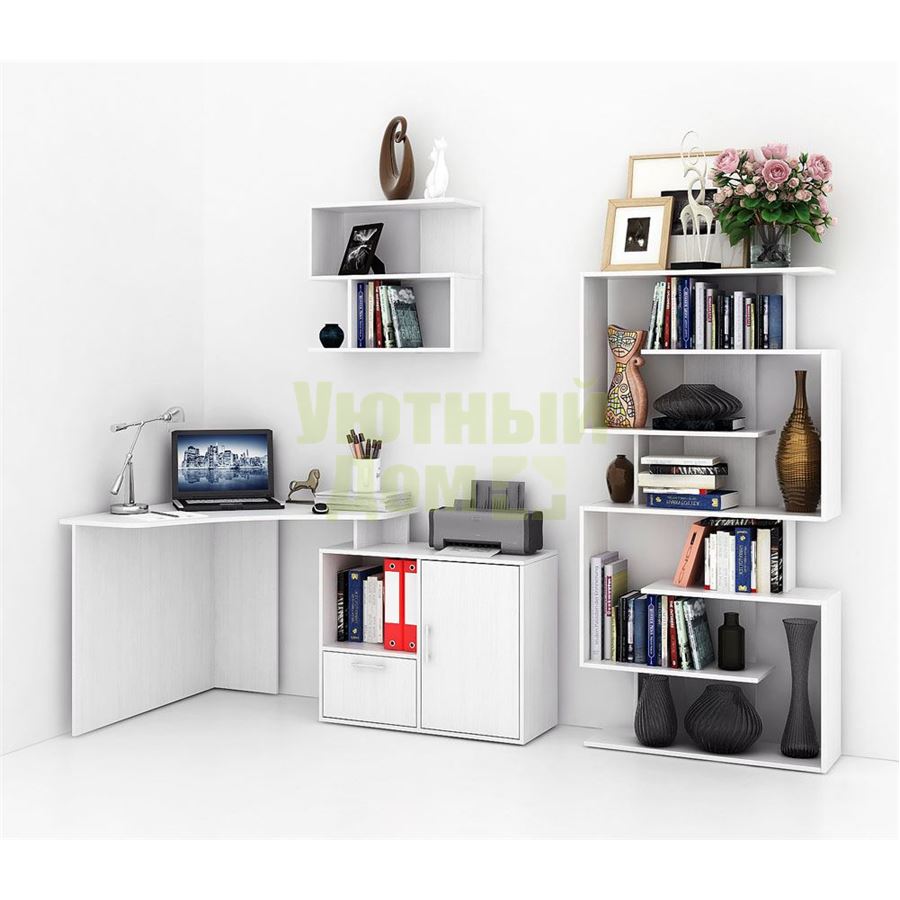 Каждый элемент возможно приобрести по отдельности. Состав комплекта: стол угловой Корнет-2 (1 шт.), стеллаж Зет-1 (1 шт.), полка Файн-12 (1 шт.).