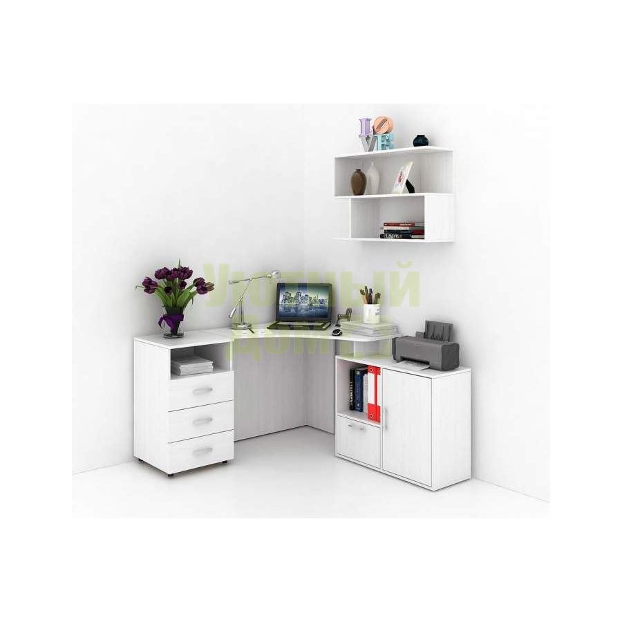 Каждый элемент возможно приобрести по отдельности. Состав комплекта: стол угловой Корнет-2 (1 шт.), тумба Альба-4 (1 шт.), полка Файн-13 (1 шт.).