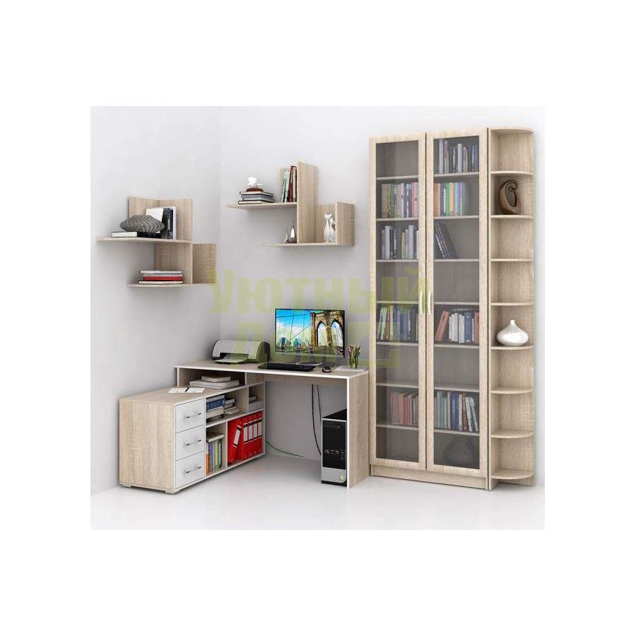 Каждый элемент возможно приобрести по отдельности. Состав комплекта: стол угловой Краст-2 (1 шт.), стеллаж Милан-46 (1 шт.), угловой терминал Милан-34 (1 шт.), полка Файн-17 (1 шт.).