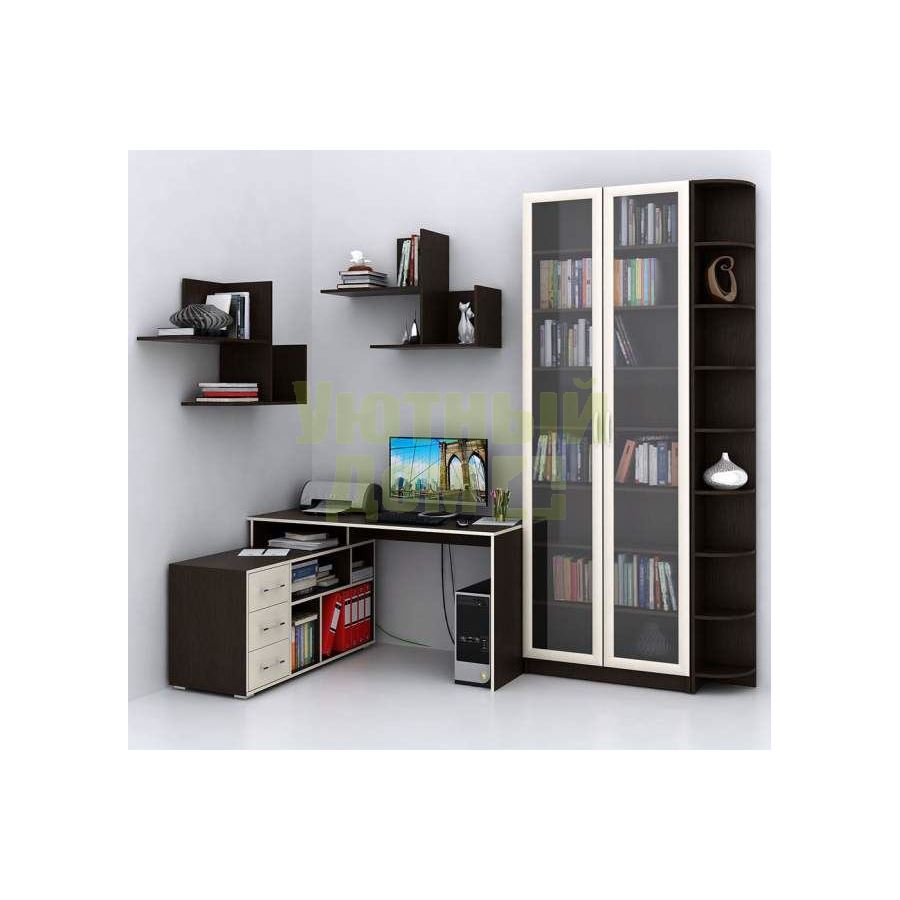 Декоративные заглушки в тон мебели для скрытия технологических отверстий....читать ещеКаждый элемент возможно приобрести по отдельности. Состав комплекта: стол угловой Краст-2 (1 шт.), стеллаж Милан-46 (1 шт.), угловой терминал Милан-34 (1 шт.), полка Файн-17 (1 шт.).