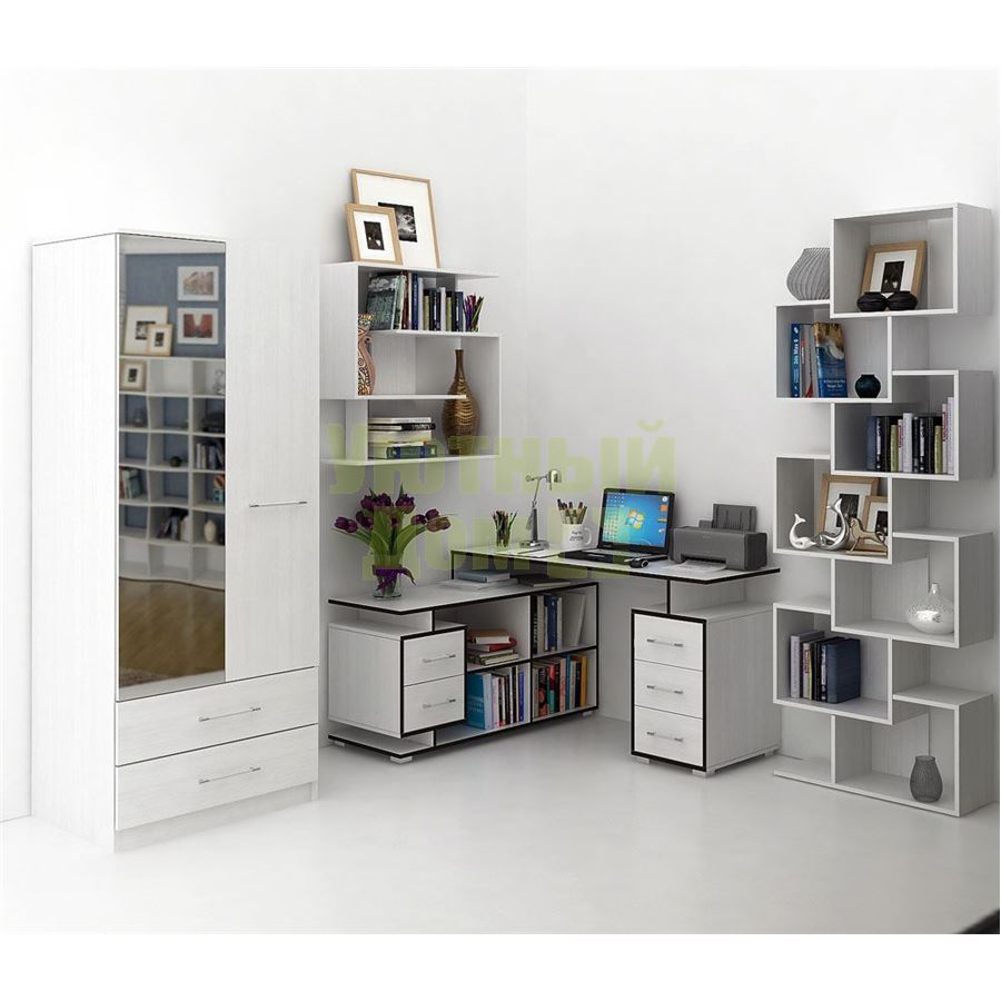 Каждый элемент возможно приобрести по отдельности. Состав комплекта: стол угловой Краст-3 (1 шт.), стеллаж Зет-4 (1 шт.), шкаф Ланс-23 (1 шт.), полка Зет-8 (1 шт.).