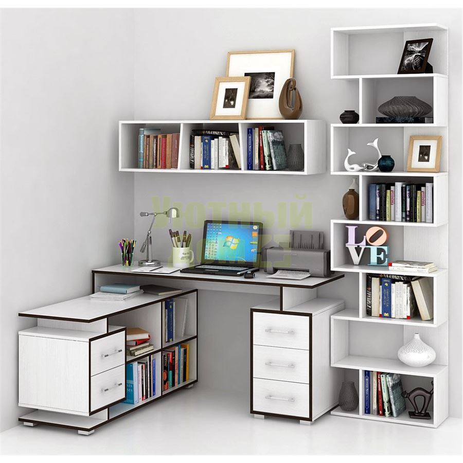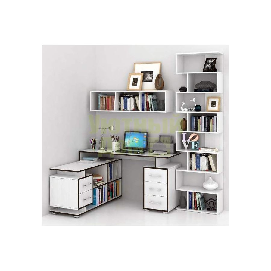 Каждый элемент возможно приобрести по отдельности. Состав комплекта: стол угловой Краст-3 (1 шт.), стеллаж Файн-2 (1 шт.), полка Вэйв-8 (1 шт.).