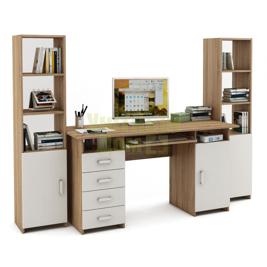 Уголок школьника Лайт-8К (СТЛТ-1 + ПСЛТ-8К + СТЛТ-1)-Дуб-сонома/Белый