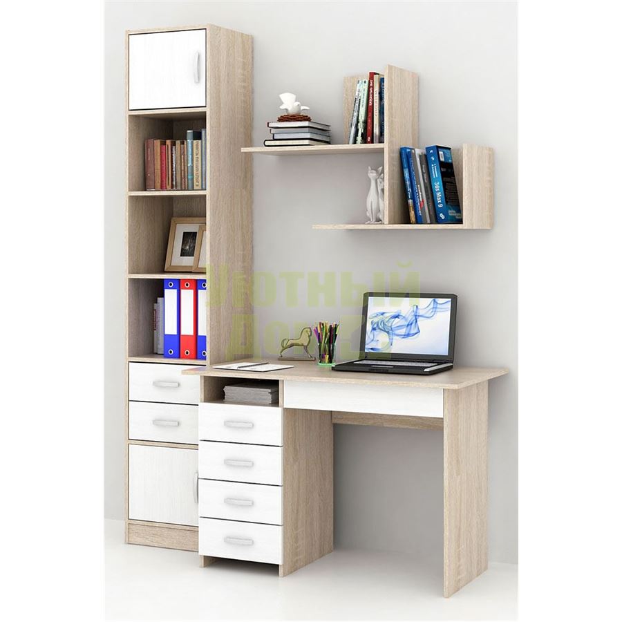 Каждый элемент возможно приобрести по отдельности. Состав комплекта: стол Милан-1 (1 шт.), стеллаж Либерти-4 (1 шт.), Блок ящиков Либерти малый (1 шт.), дверка для стеллажей Либерти (2 шт.), полка Файн-17 (1 шт.).