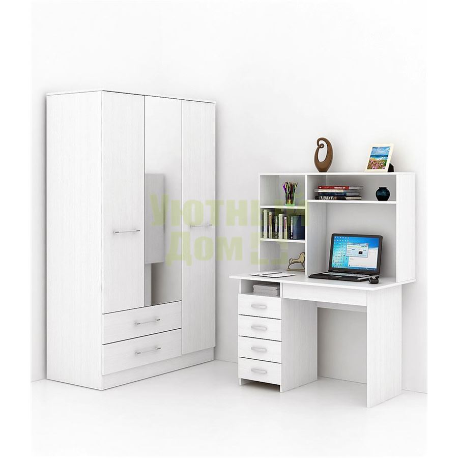 Каждый элемент возможно приобрести по отдельности. Состав комплекта: стол Милан-1 (1 шт.), надставка Милан-1,3,5,8 (1 шт.), шкаф Ланс-53 (1 шт.).