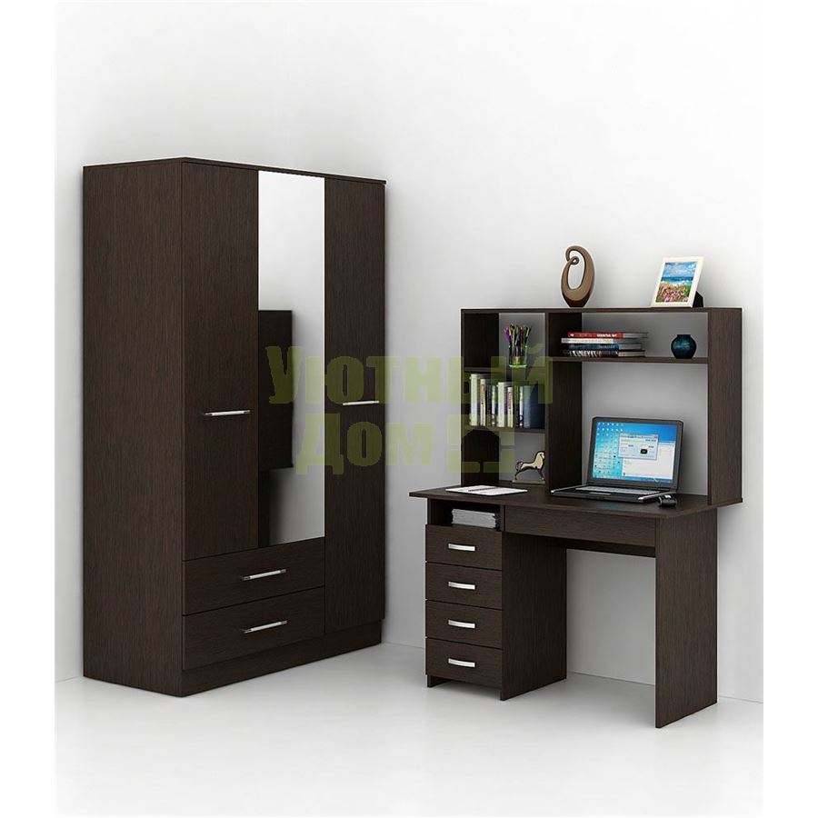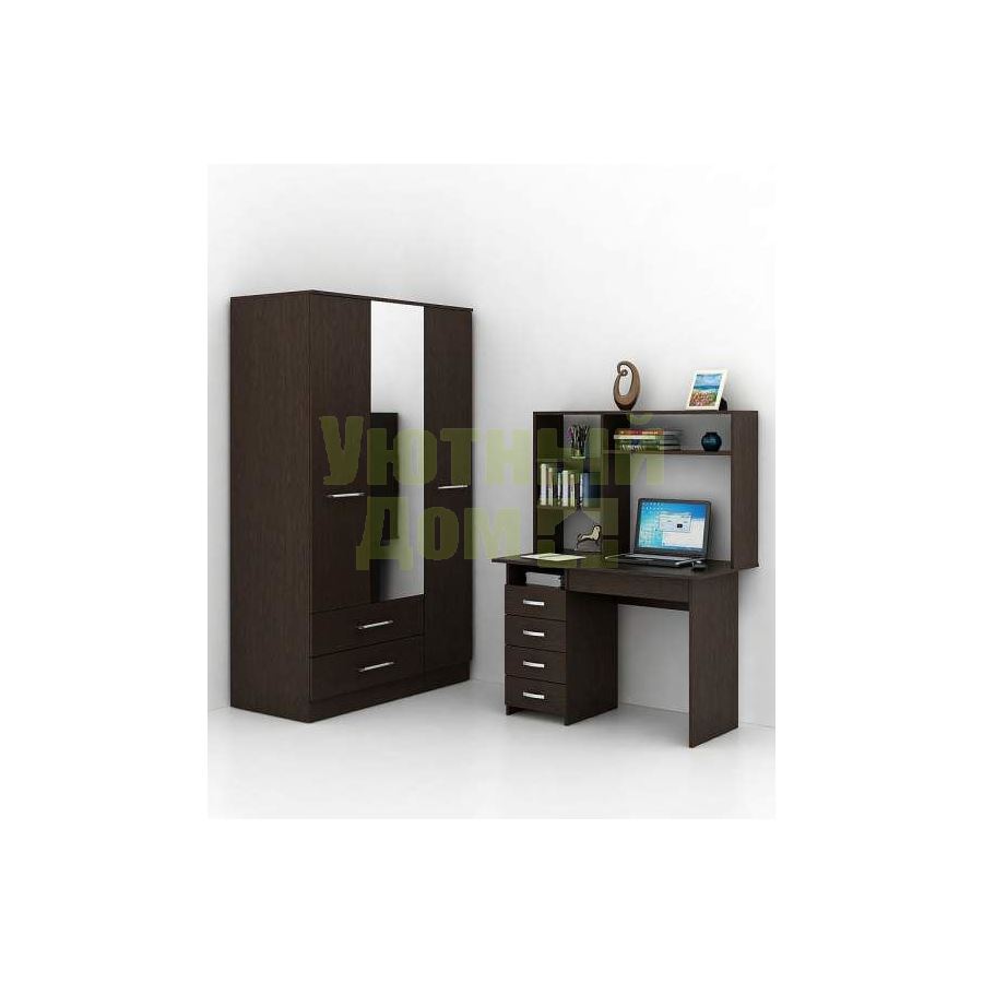 Каждый элемент возможно приобрести по отдельности. Состав комплекта: стол Милан-1 (1 шт.), надставка Милан-1,3,5,8 (1 шт.), шкаф Ланс-53 (1 шт.).