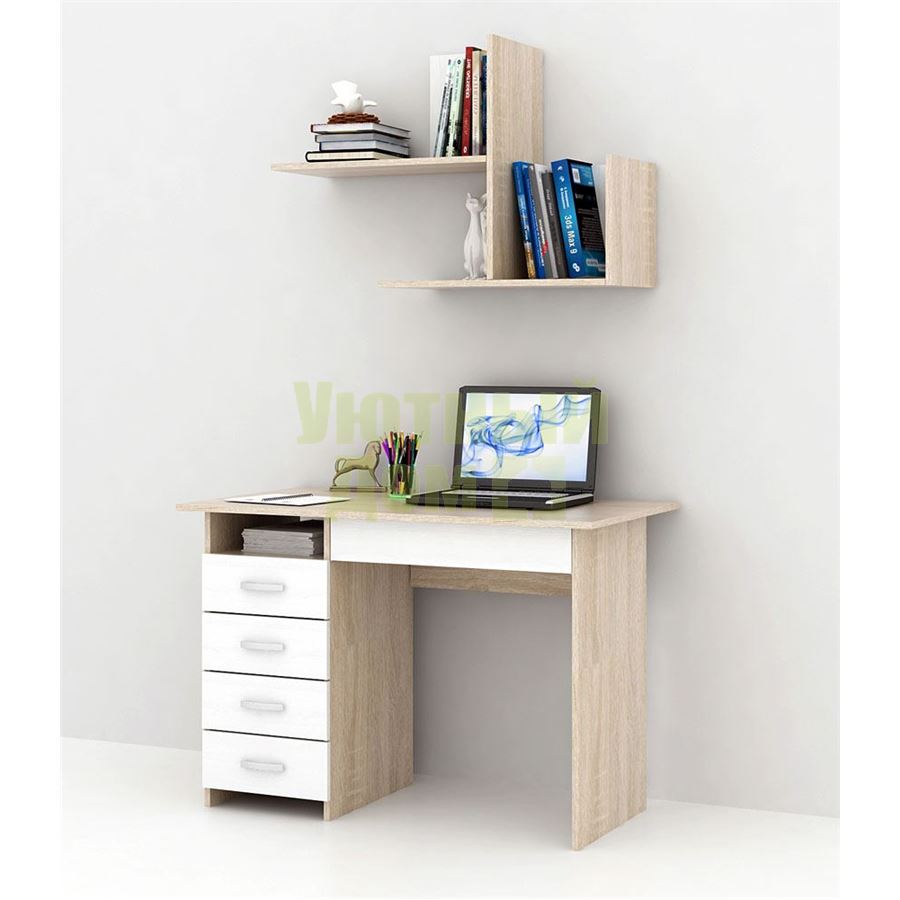Каждый элемент возможно приобрести по отдельности. Состав комплекта: стол Милан-1 (1 шт.), полка Файн-17 (1 шт.).