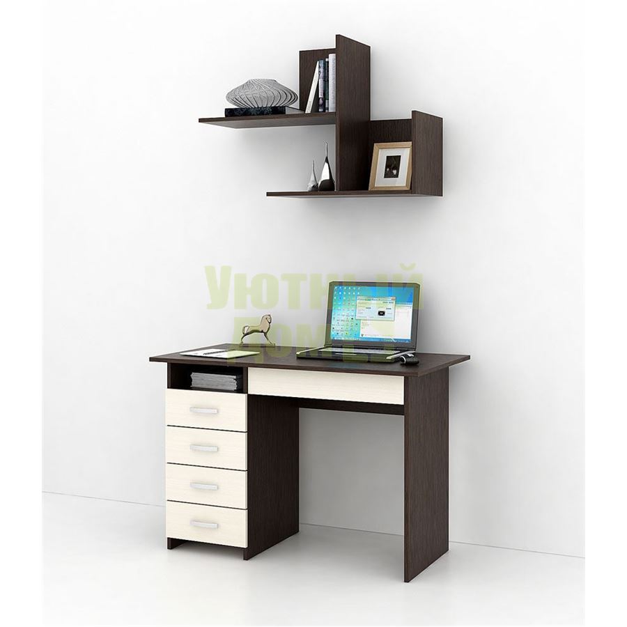 Каждый элемент возможно приобрести по отдельности. Состав комплекта: стол Милан-1 (1 шт.), полка Файн-17 (1 шт.).