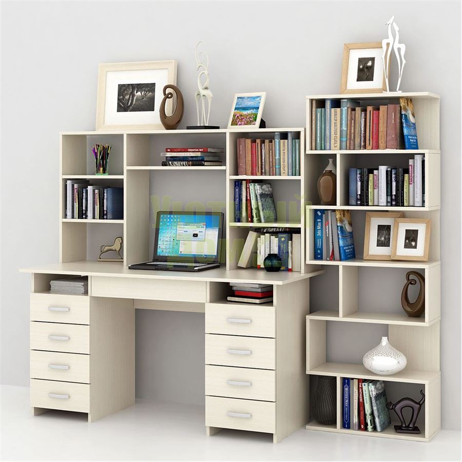 Сб...читать ещеКаждый элемент возможно приобрести по отдельности. Состав комплекта: стол Милан-10Я (1 шт.), надставка Милан-6,7,10 (1 шт.), стеллаж Файн-1 (1 шт.).