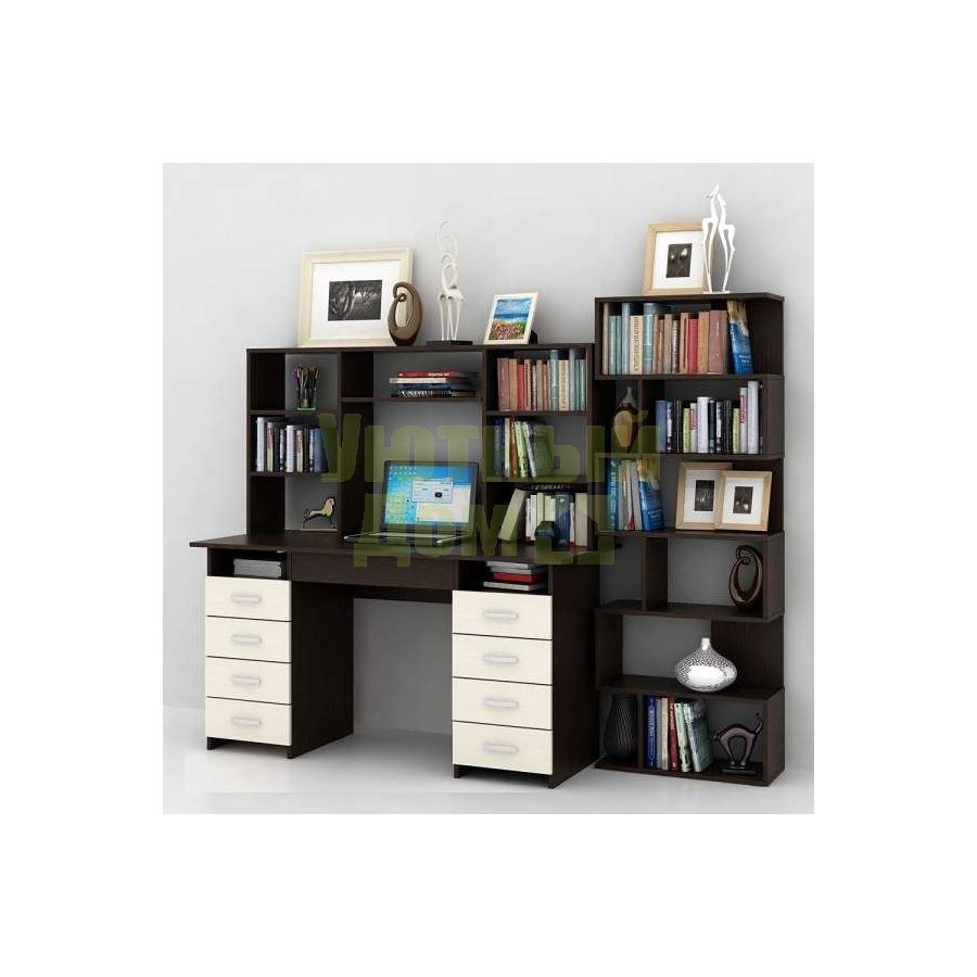 Каждый элемент возможно приобрести по отдельности. Состав комплекта: стол Милан-10Я (1 шт.), надставка Милан-6,7,10 (1 шт.), стеллаж Файн-1 (1 шт.).
