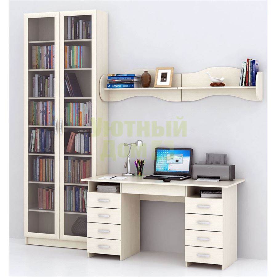 Сборку данн...читать ещеКаждый элемент возможно приобрести по отдельности. Состав комплекта: стол Милан-10Я (1 шт.), полка Тэя-1 (2 шт.), стеллаж Милан-46 (1 шт.).