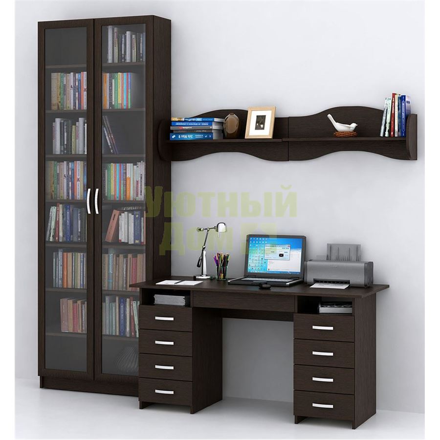 Каждый элемент возможно приобрести по отдельности. Состав комплекта: стол Милан-10Я (1 шт.), полка Тэя-1 (2 шт.), стеллаж Милан-46 (1 шт.).