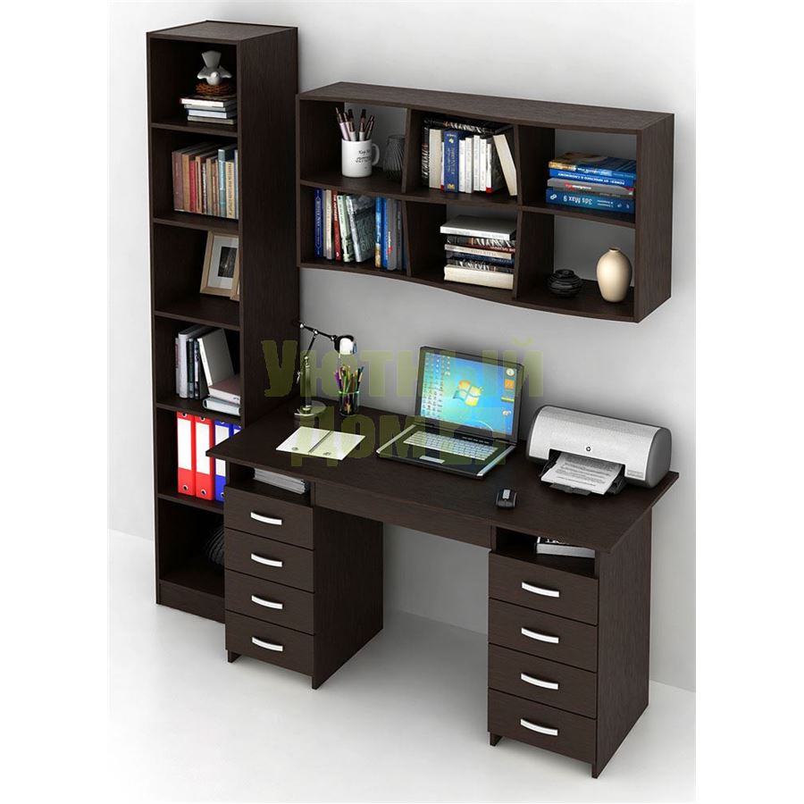Каждый элемент возможно приобрести по отдельности. Состав комплекта: стол Милан-10Я (1 шт.), полка Вэйв-9 (1 шт.), стеллаж Либерти-4 (1 шт.).