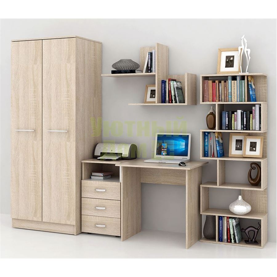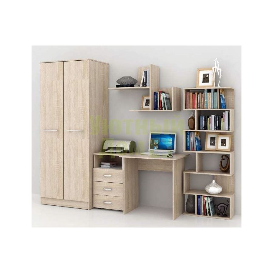 Сбо...читать ещеКаждый элемент возможно приобрести по отдельности. Состав комплекта: стол Милан-2 (1 шт.), шкаф Ланс-1 (1 шт.), стеллаж Файн-1 (1 шт.), полка Файн-17 (1 шт.), тумба Альба-4 (1 шт.).