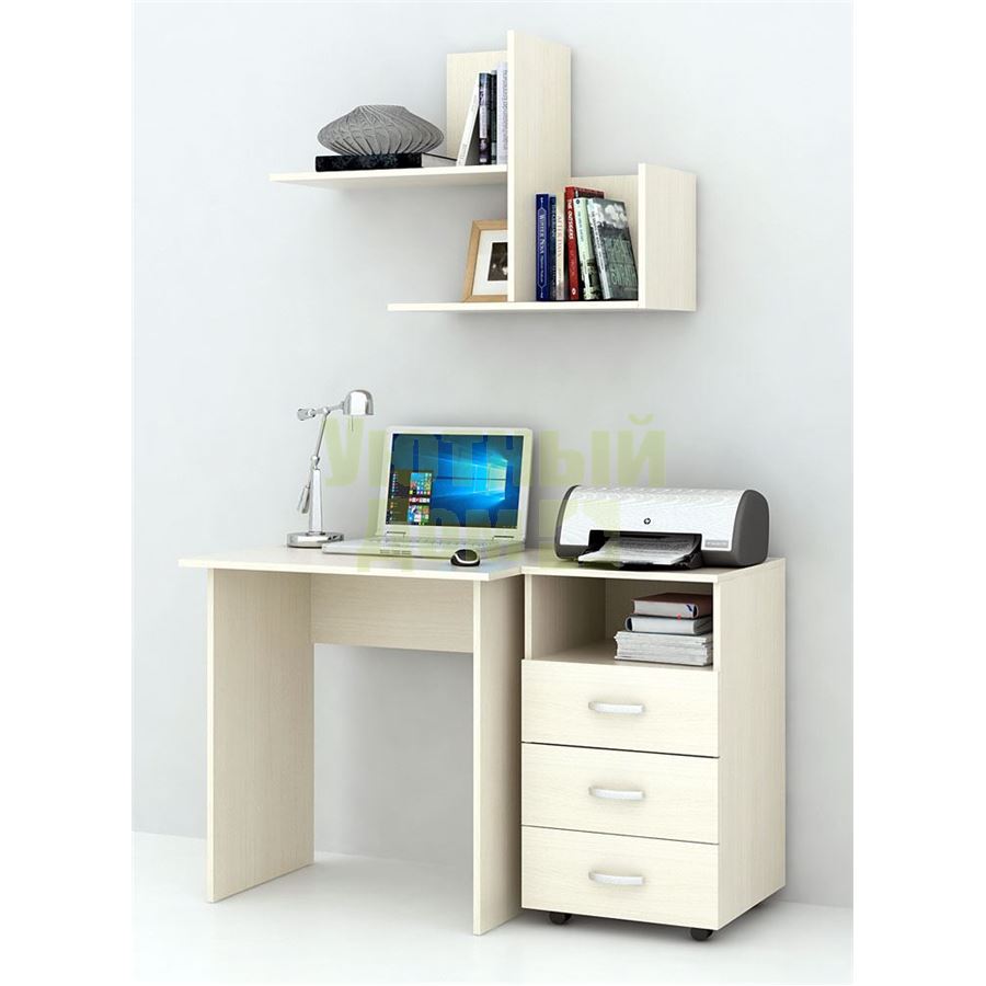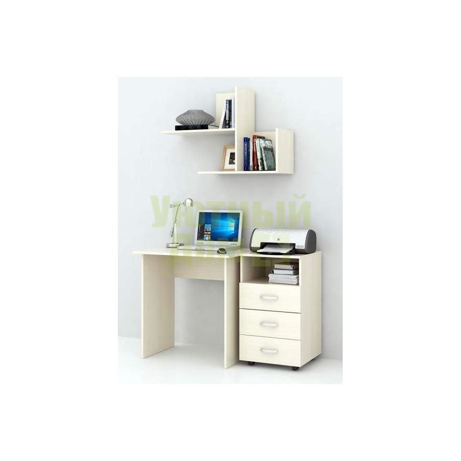Каждый элемент возможно приобрести по отдельности. Состав комплекта: стол Милан-2 (1 шт.), полка Файн-17 (1 шт.), тумба Альба-4 (1 шт.).