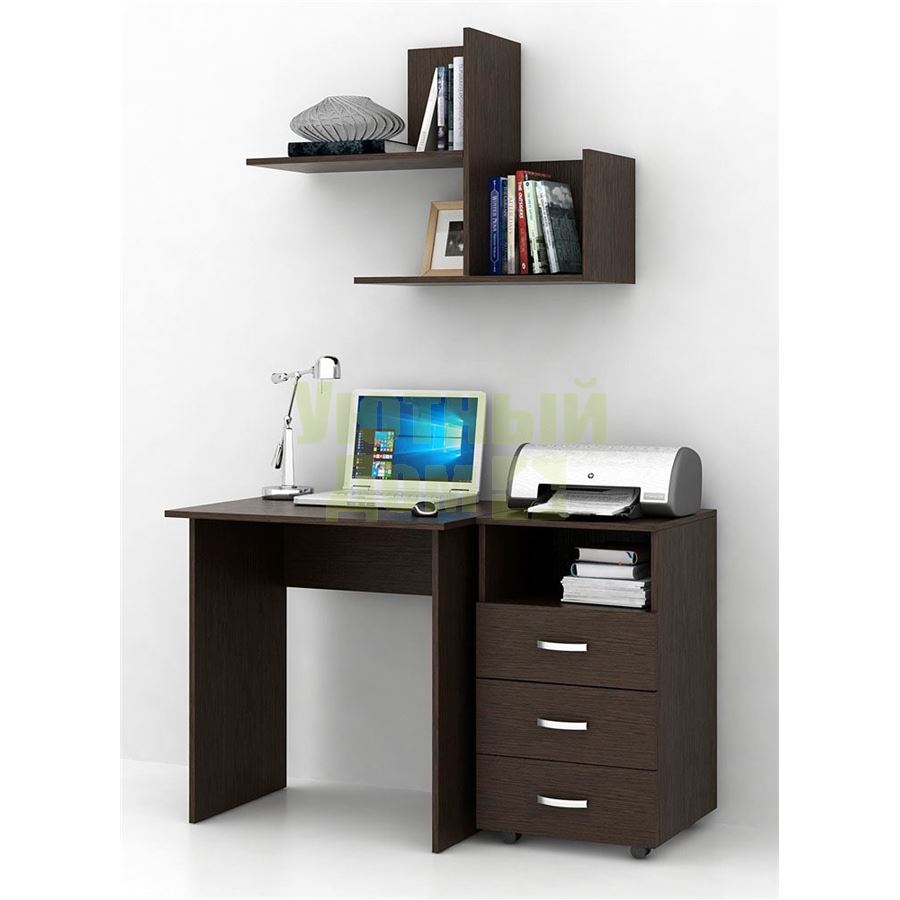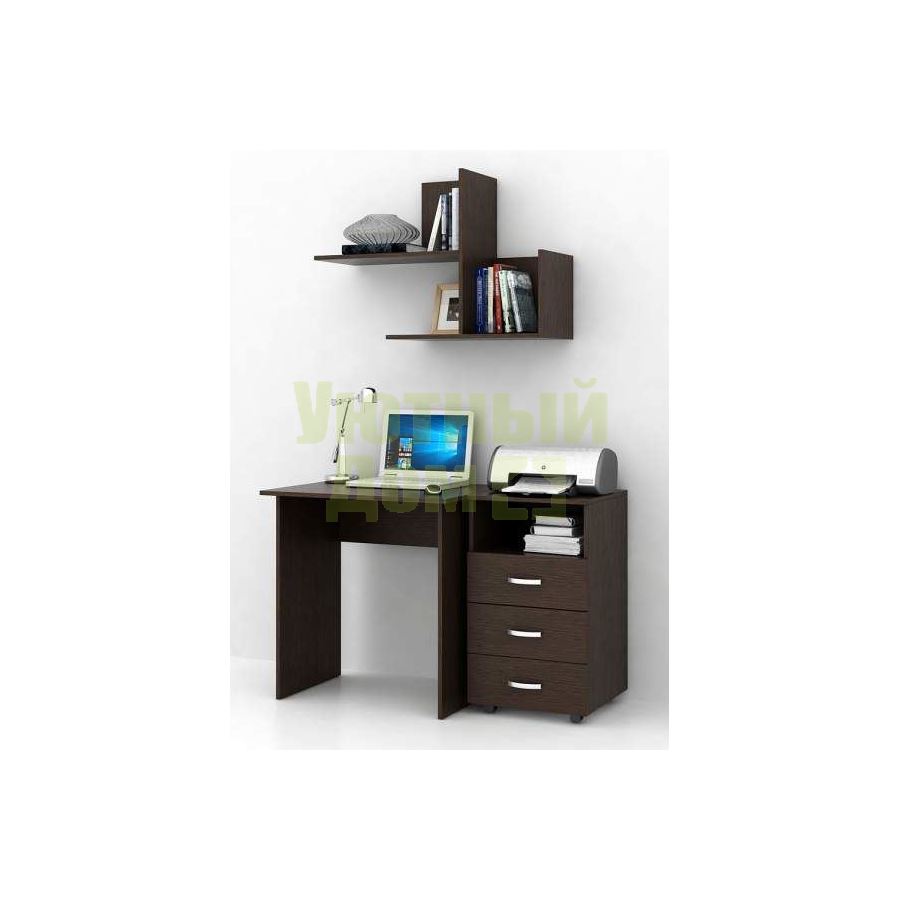 Каждый элемент возможно приобрести по отдельности. Состав комплекта: стол Милан-2 (1 шт.), полка Файн-17 (1 шт.), тумба Альба-4 (1 шт.).