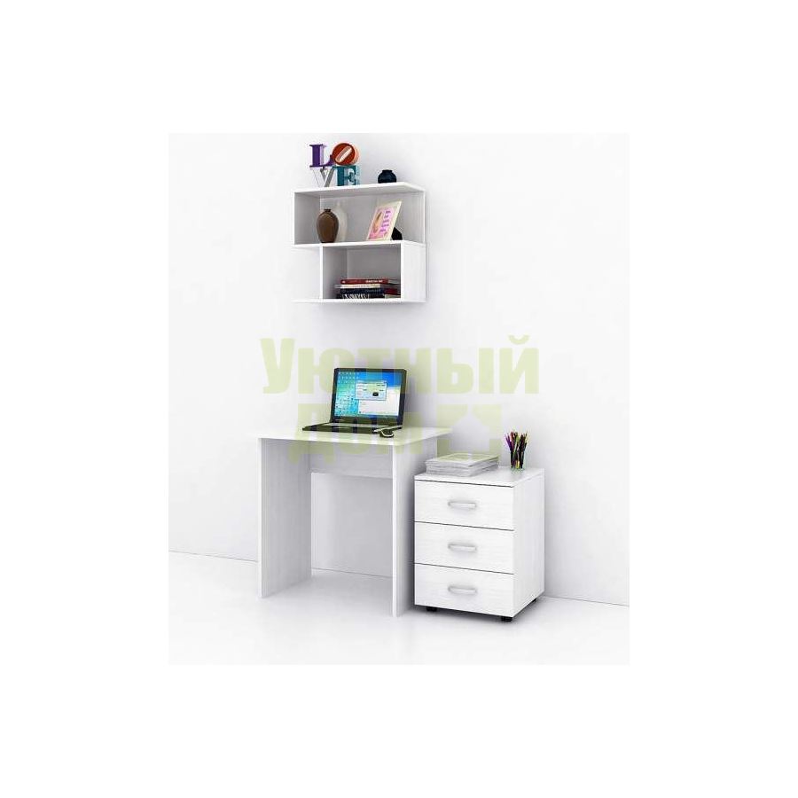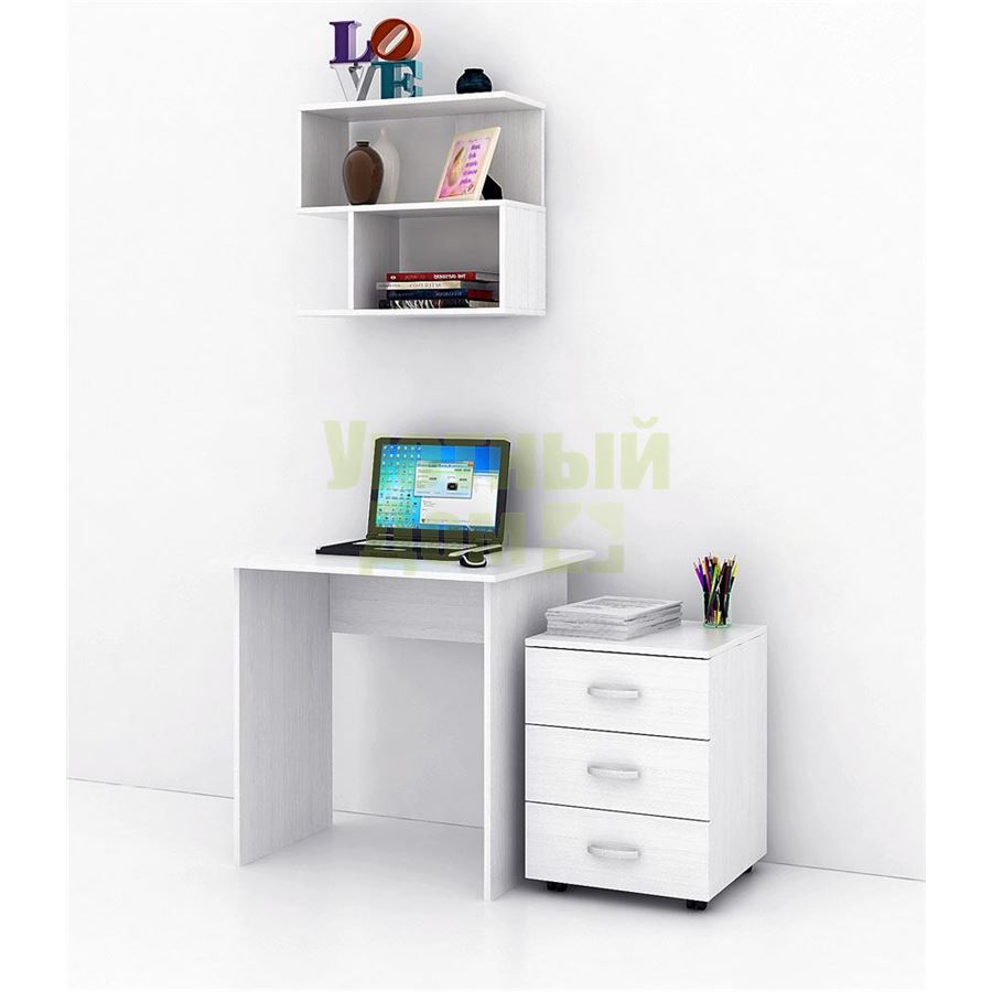 Каждый элемент возможно приобрести по отдельности. Состав комплекта: стол Милан-2 (1 шт.), полка Файн-12 (1 шт.), тумба Альба-3 (1 шт.).