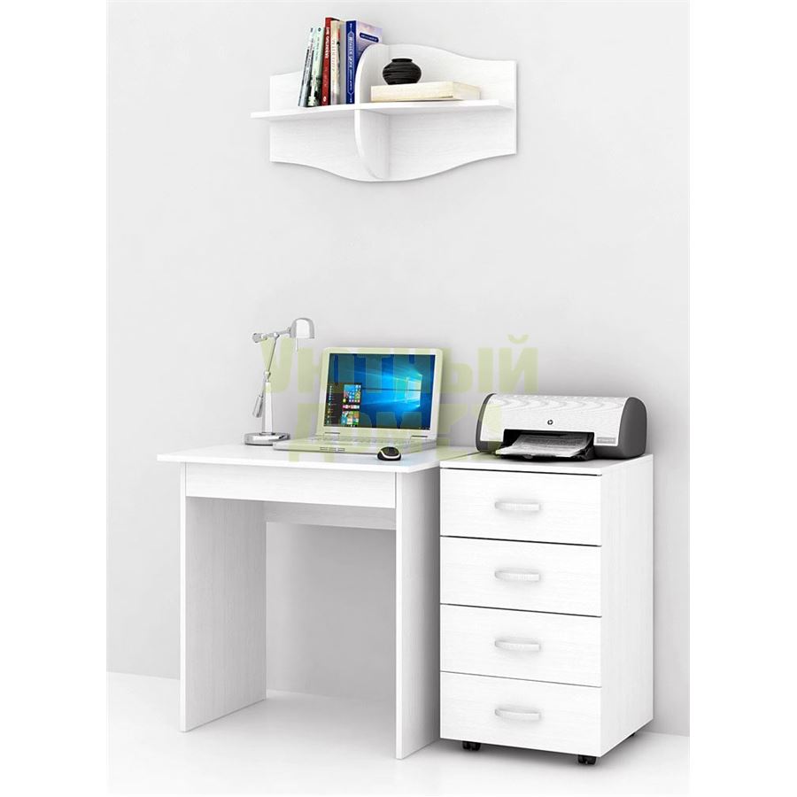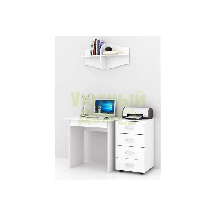 Каждый элемент возможно приобрести по отдельности. Состав комплекта: стол Милан-2Я (1 шт.), тумба Альба-7 (1 шт.), полка Тэя-3 (1 шт.).