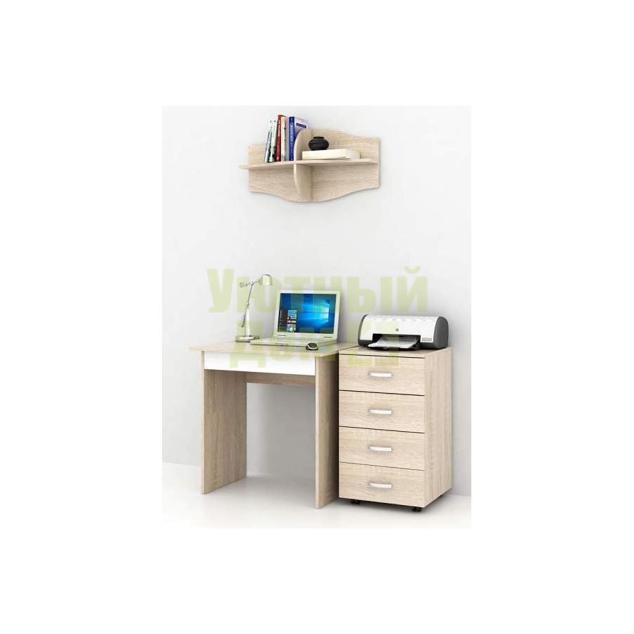 Каждый элемент возможно приобрести по отдельности. Состав комплекта: стол Милан-2Я (1 шт.), тумба Альба-7 (1 шт.), полка Тэя-3 (1 шт.).