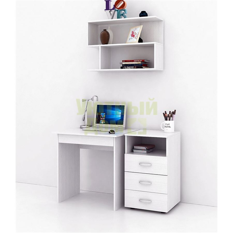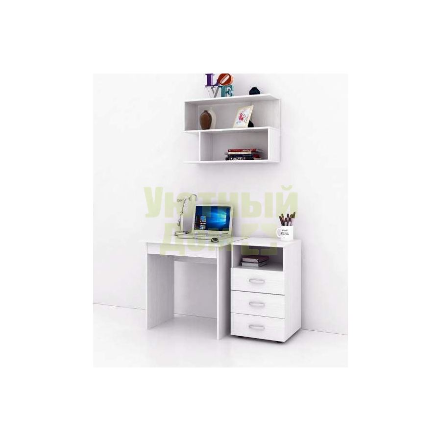 Каждый элемент возможно приобрести по отдельности. Состав комплекта: стол Милан-2Я (1 шт.), тумба Альба-4 (1 шт.), полка Файн-13 (1 шт.).