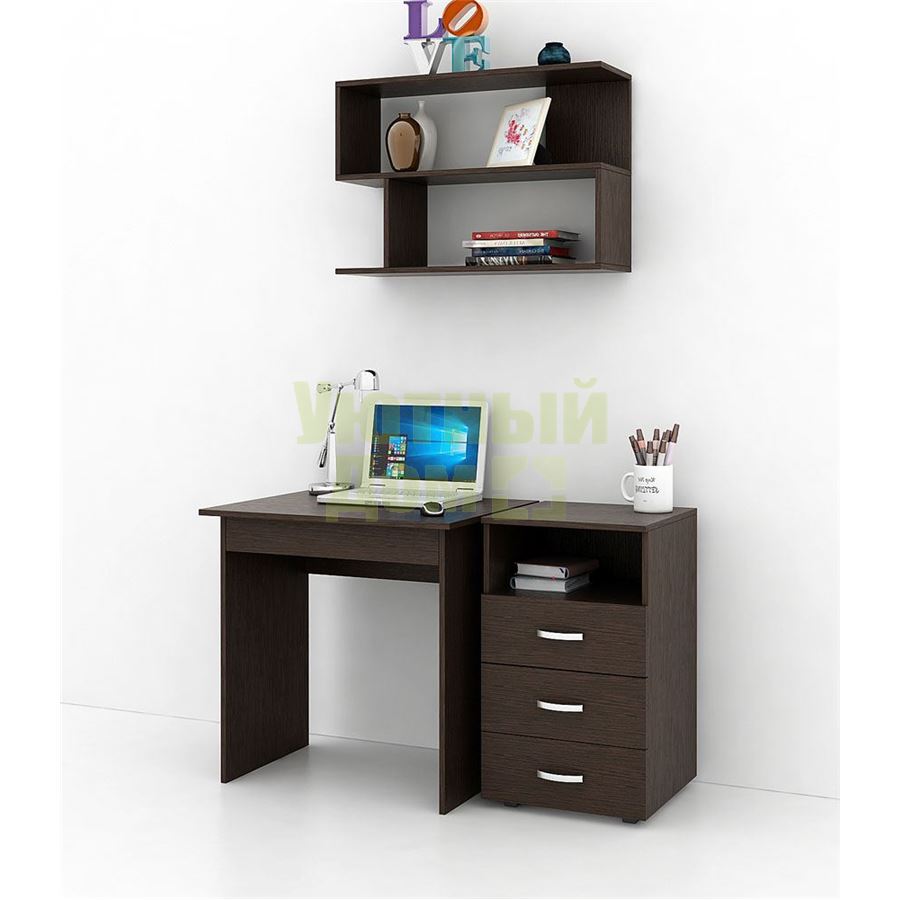 Каждый элемент возможно приобрести по отдельности. Состав комплекта: стол Милан-2Я (1 шт.), тумба Альба-4 (1 шт.), полка Файн-13 (1 шт.).