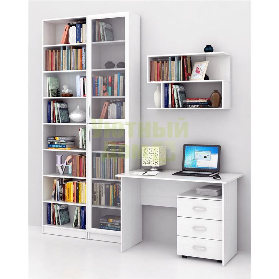 Каждый элемент возможно приобрести по отдельности. Состав комплекта: стол Милан-5 (1 шт.), стеллажи Милан-47 (1 шт.), Милан-33 (1 шт.), полка Файн-13 (1 шт.), тумба Альба-3 (1 шт.).