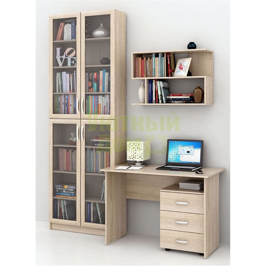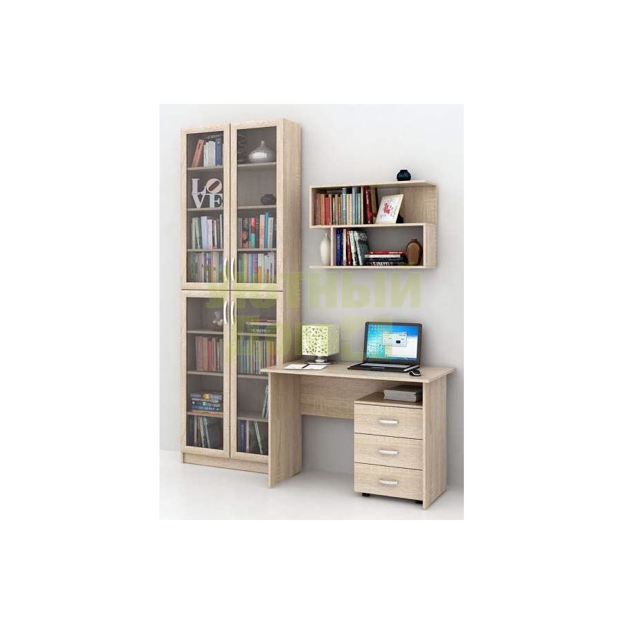 Каждый элемент возможно приобрести по отдельности. Состав комплекта: стол Милан-5 (1 шт.), Стеллаж Милан-36 (1 шт.), полка Файн-13 (1 шт.), тумба Альба-3 (1 шт.).