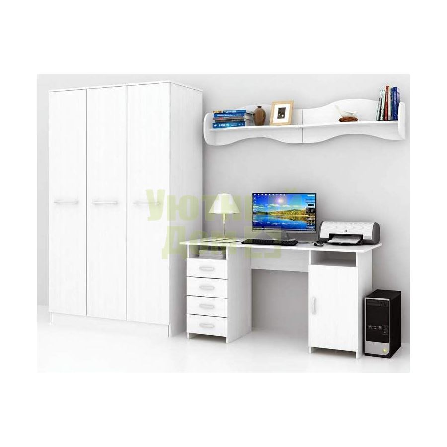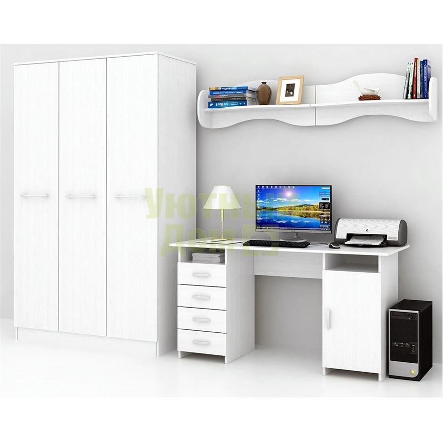 Сборку данного тов...читать ещеКаждый элемент возможно приобрести по отдельности. Состав комплекта: стол Милан-7 (1 шт.), шкаф Ланс-3 (1 шт.), полка Тэя-1 (2 шт.).