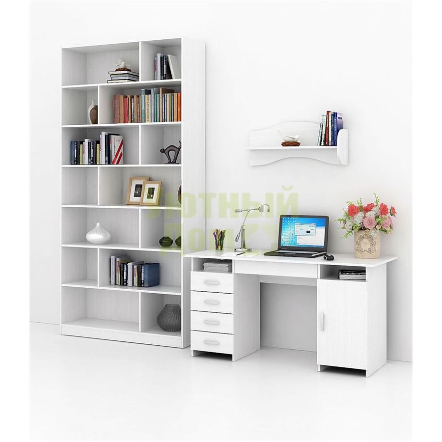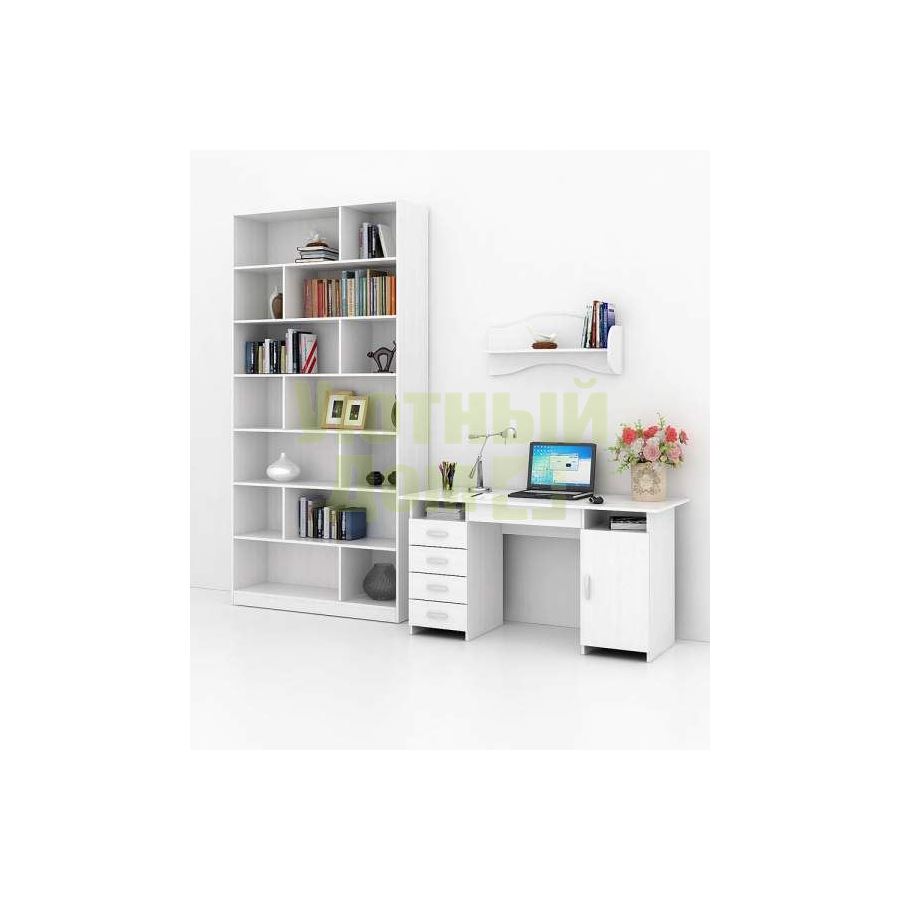 Каждый элемент возможно приобрести по отдельности. Состав комплекта: стол Милан-7Я (1 шт.), стеллаж Либерти-3 (1 шт.), полка Тэя-1 (1 шт.).