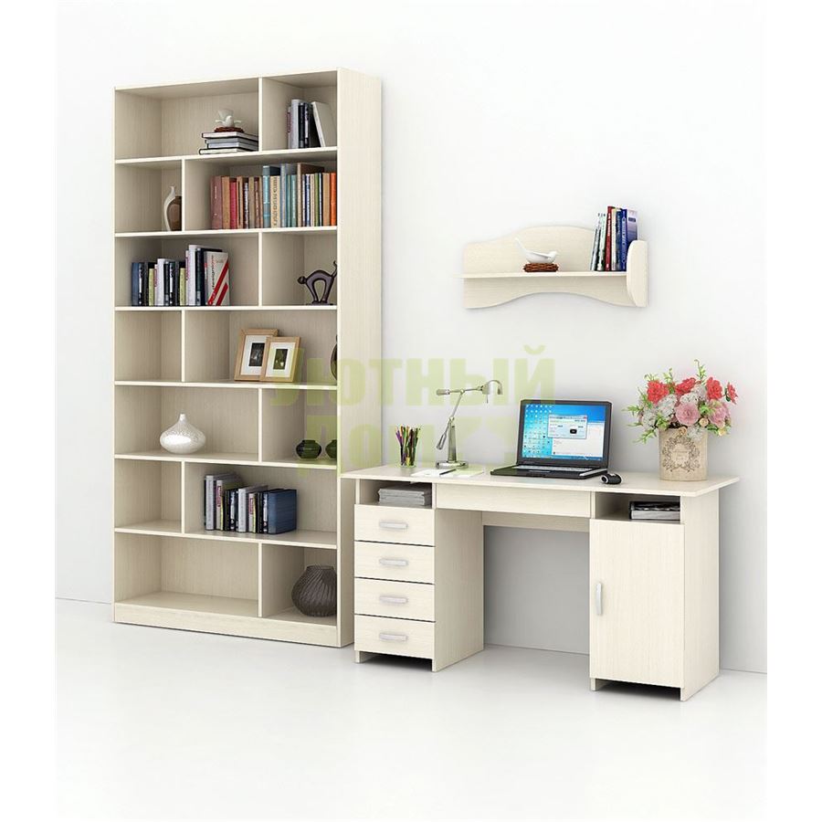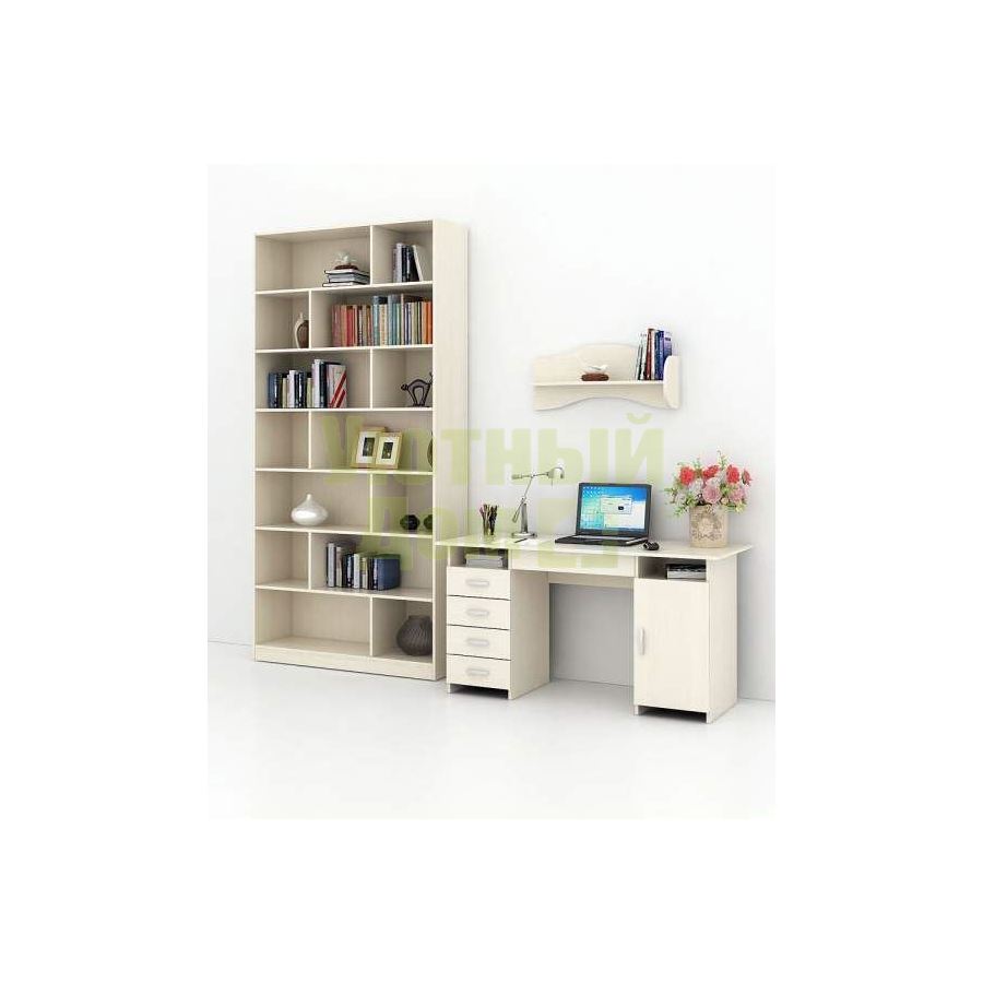 Сборку данн...читать ещеКаждый элемент возможно приобрести по отдельности. Состав комплекта: стол Милан-7Я (1 шт.), стеллаж Либерти-3 (1 шт.), полка Тэя-1 (1 шт.).