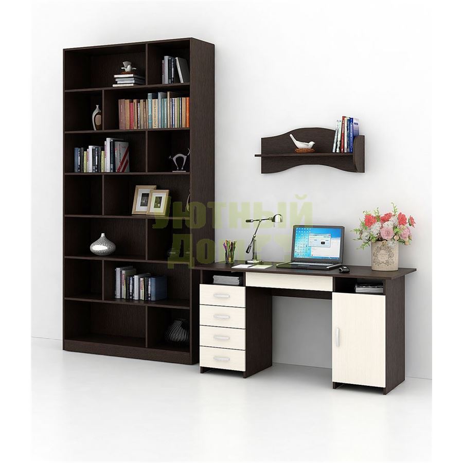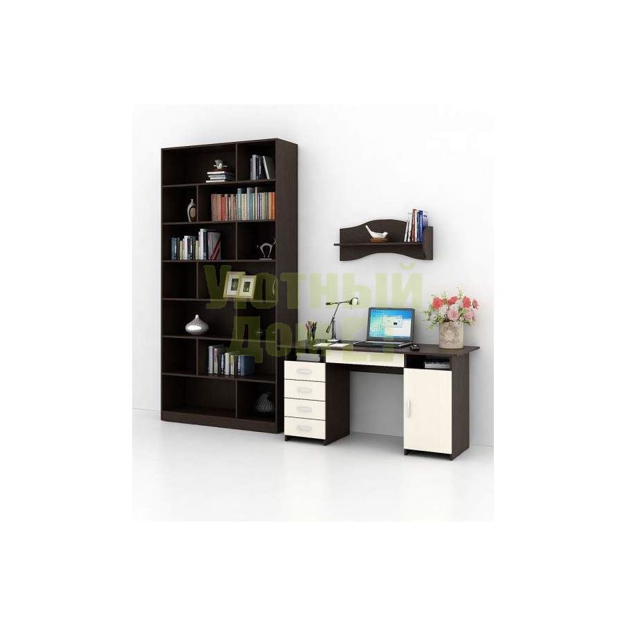Каждый элемент возможно приобрести по отдельности. Состав комплекта: стол Милан-7Я (1 шт.), стеллаж Либерти-3 (1 шт.), полка Тэя-1 (1 шт.).