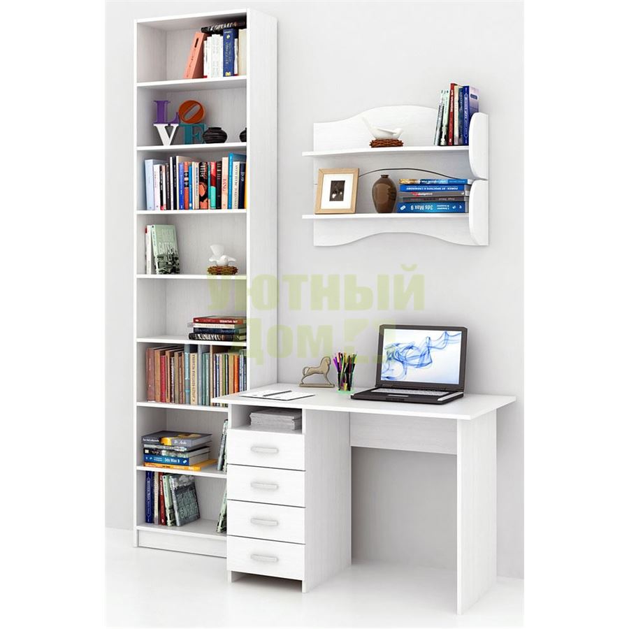 Каждый элемент возможно приобрести по отдельности. Состав комплекта: стол Милан (1 шт.), стеллаж Милан-33 (1 шт.), полка Тэя-1 (2 шт.).