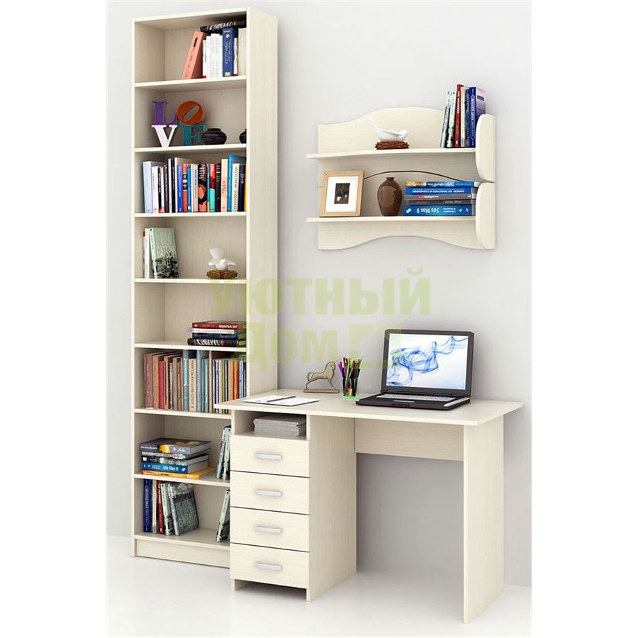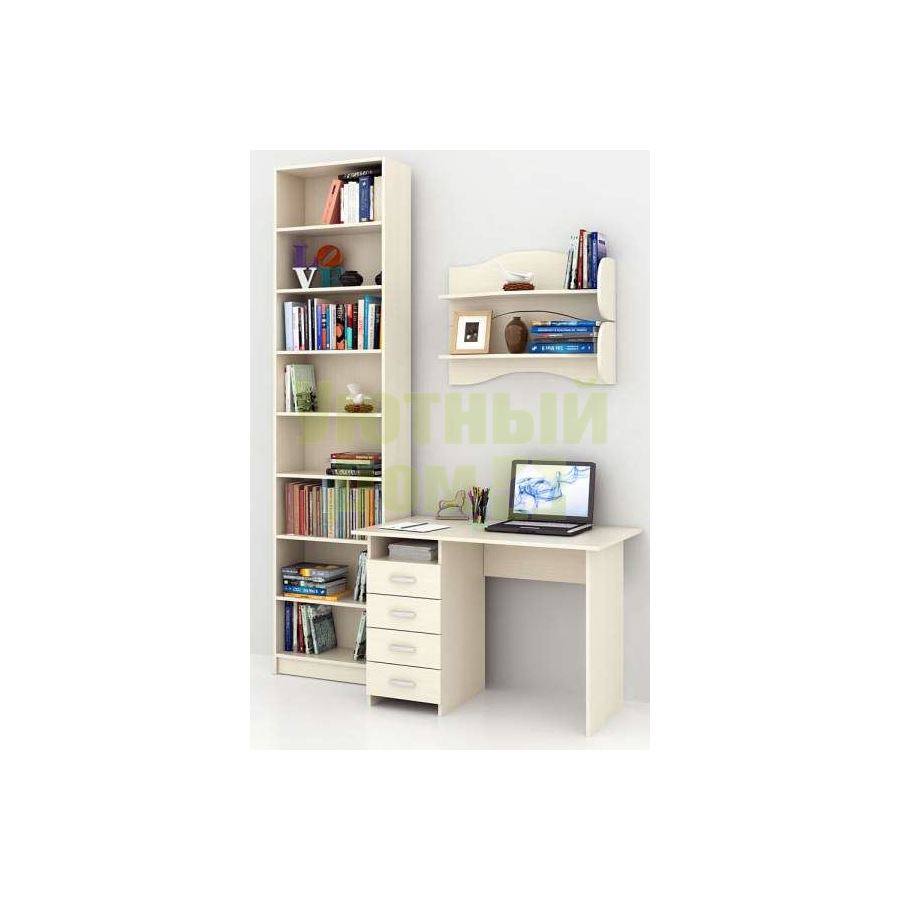 Каждый элемент возможно приобрести по отдельности. Состав комплекта: стол Милан (1 шт.), стеллаж Милан-33 (1 шт.), полка Тэя-1 (2 шт.).