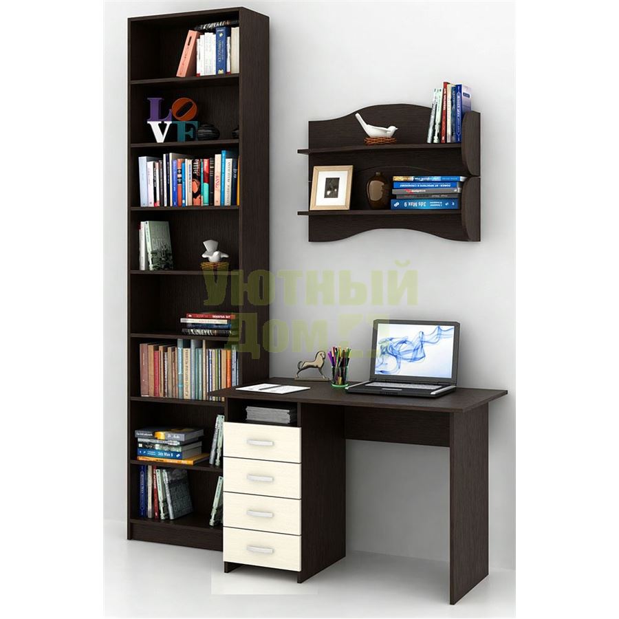 Каждый элемент возможно приобрести по отдельности. Состав комплекта: стол Милан (1 шт.), стеллаж Милан-33 (1 шт.), полка Тэя-1 (2 шт.).