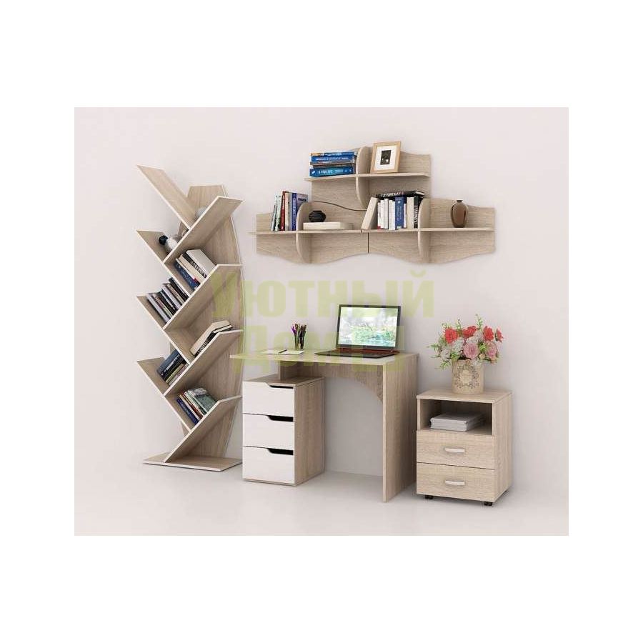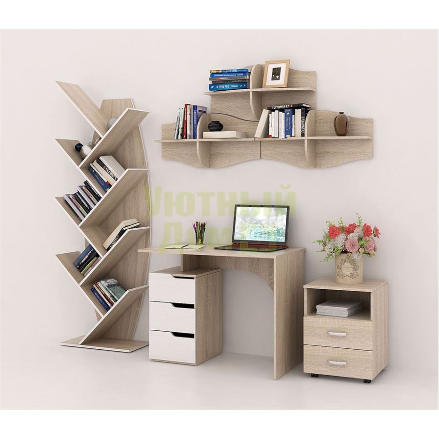 Каждый элемент возможно приобрести по отдельности. Состав комплекта: стол Нейт-1 (1 шт.), стеллаж Мист-1 (1 шт.), полка Тэя-3 (3 шт.), тумба Альба-2 (1 шт.).