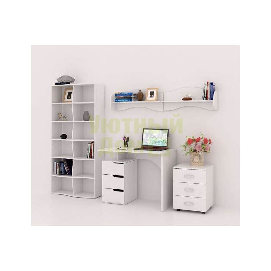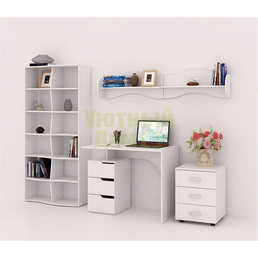 Каждый элемент возможно приобрести по отдельности. Состав комплекта: стол Нейт-1 (1 шт.), стеллаж Вэйв-1 (1 шт.), полка Тэя-1 (2 шт.), тумба Альба-3 (1 шт.). Декоративные заглушки в тон мебели для скрытия технологических отверстий. Сборку данного товара желательно осуществлять вдвоем во избежание травмоопасных ситуаций или механических повреждений мебели.