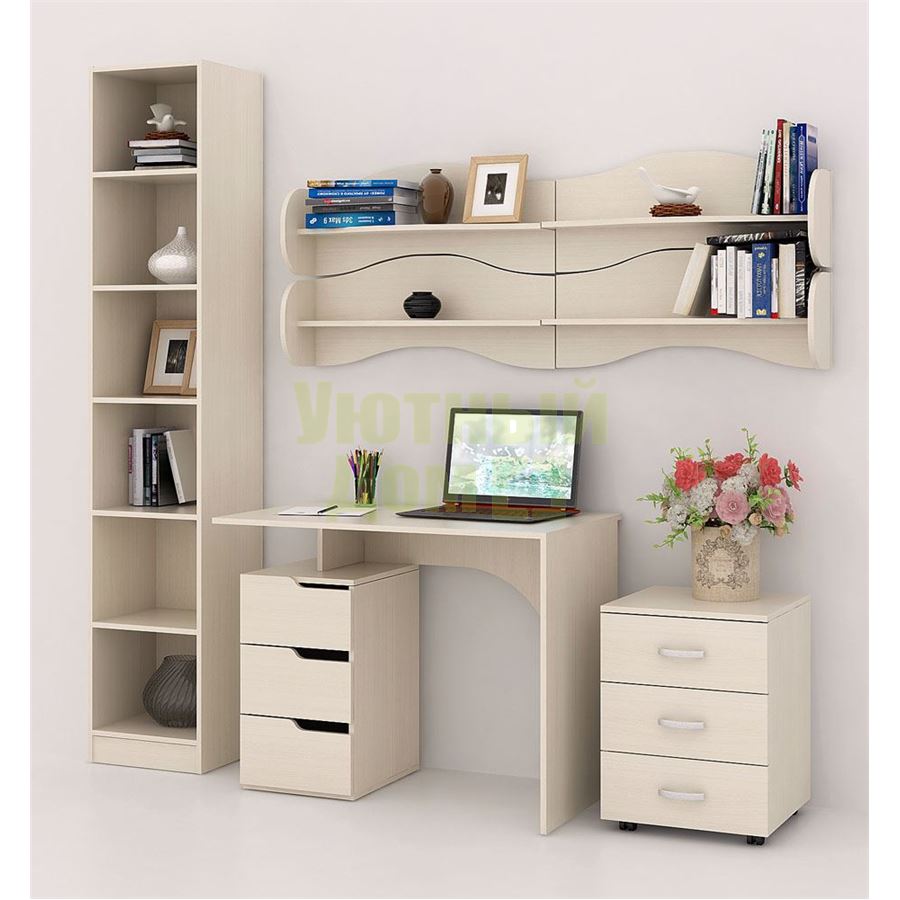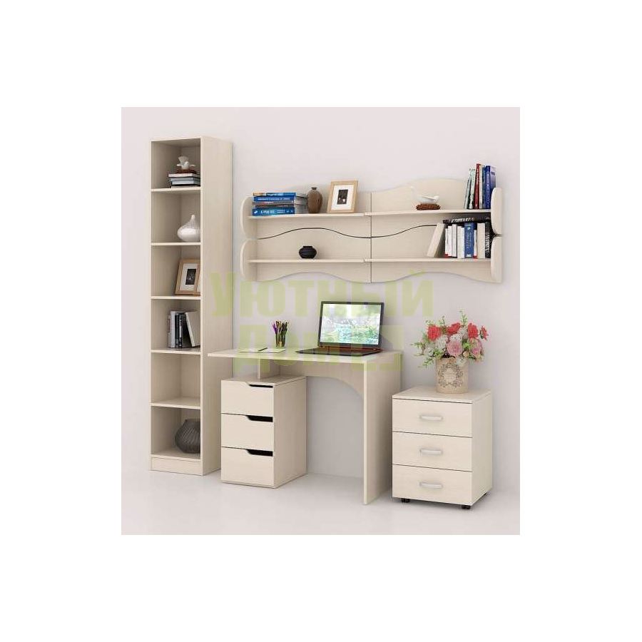 Каждый элемент возможно приобрести по отдельности. Состав комплекта: стол Нейт-1 (1 шт.), стеллаж Либерти-4 (1 шт.), полка Тэя-1 (4 шт.), тумба Альба-3 (1 шт.).