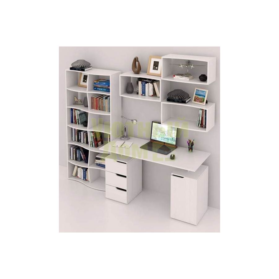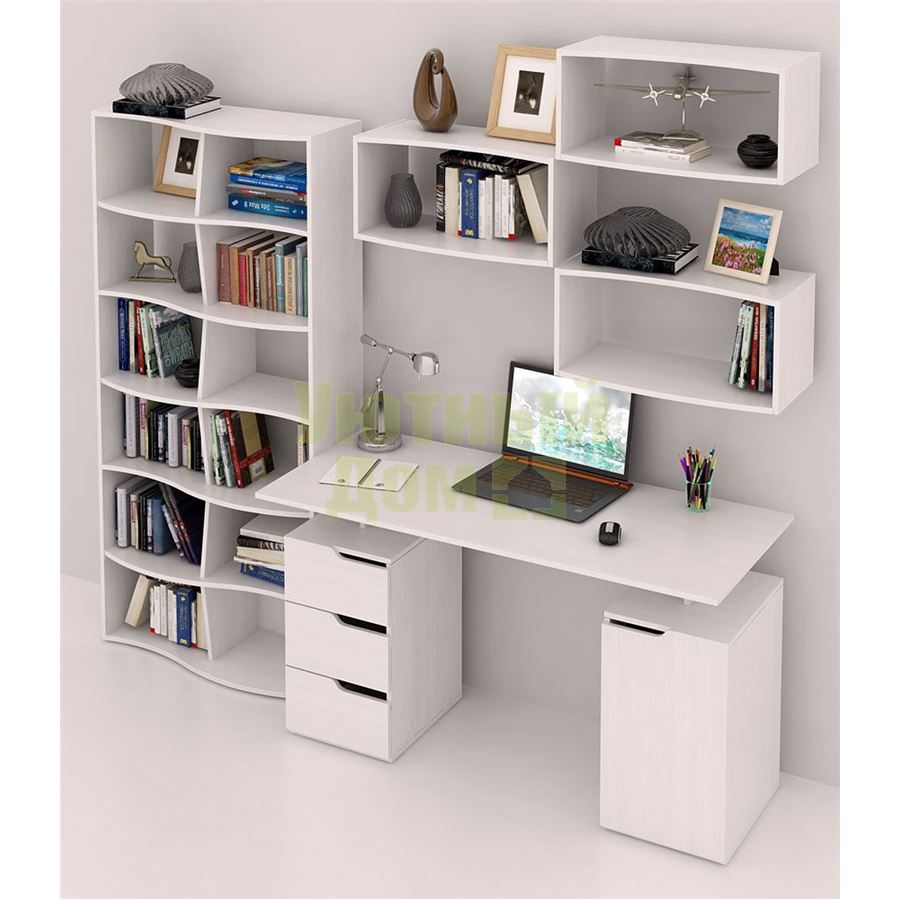 Каждый элемент возможно приобрести по отдельности. Состав комплекта: стол Нейт-3 (1 шт.), стеллаж Вэйв-(1 шт.), полка Вэйв-7 (1 шт.).