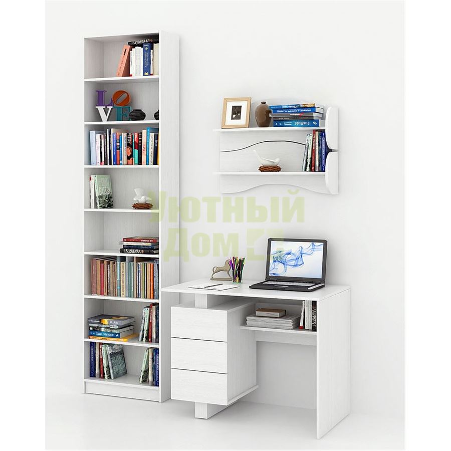 Каждый элемент возможно приобрести по отдельности. Состав комплекта: стол Ренцо-1 (1 шт.), стеллаж Милан-33 (1 шт.), полка Тэя-1 (2 шт.).