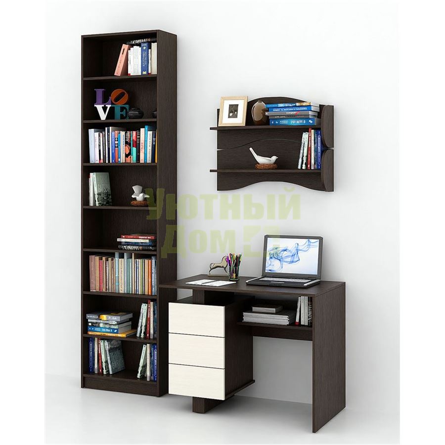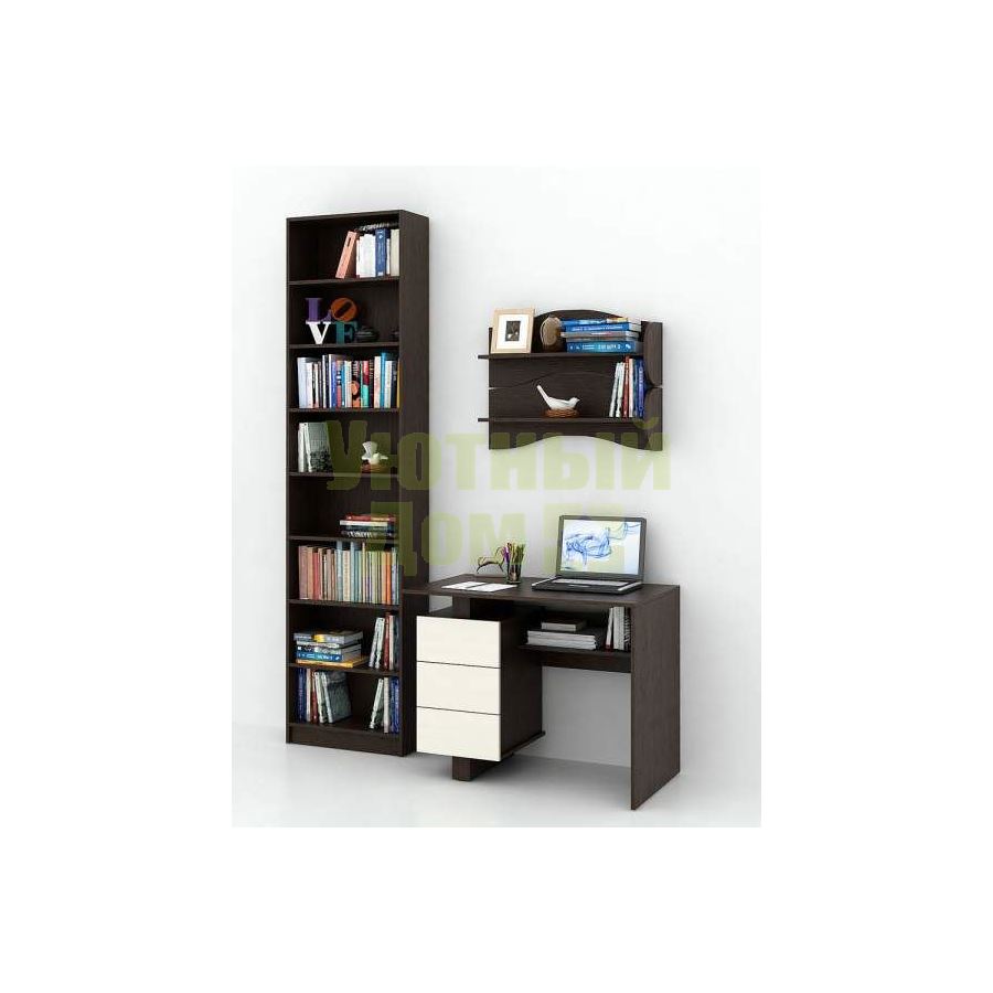 Каждый элемент возможно приобрести по отдельности. Состав комплекта: стол Ренцо-1 (1 шт.), стеллаж Милан-33 (1 шт.), полка Тэя-1 (2 шт.).