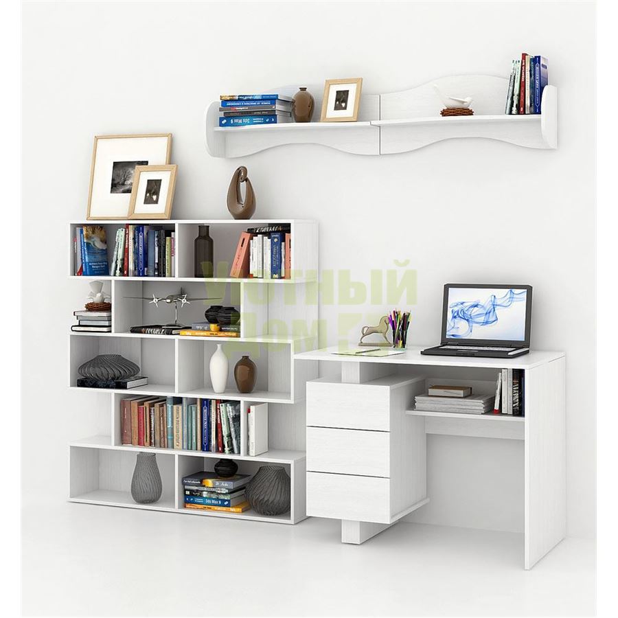 Каждый элемент возможно приобрести по отдельности. Состав комплекта: стол Ренцо-1 (1 шт.), стеллаж Грас-1 (1 шт.), полка Тэя-1 (2 шт.). Декоративные заглушки в тон мебели для скрытия технологических отверстий. Сборку данного товара желательно осуществлять вдвоем во избежание травмоопасных ситуаций или механических повреждений мебели.