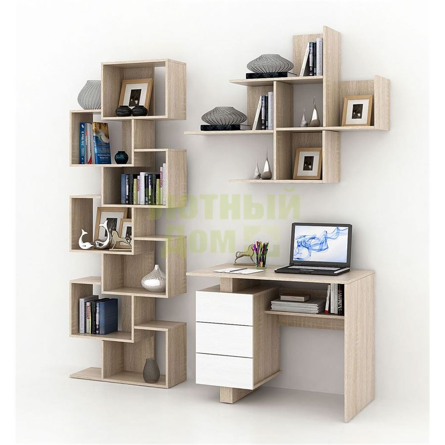 Каждый элемент возможно приобрести по отдельности. Состав комплекта: стол Ренцо-1 (1 шт.), стеллаж Зет-4 (1 шт.), полка Файн-17 (2 шт.).